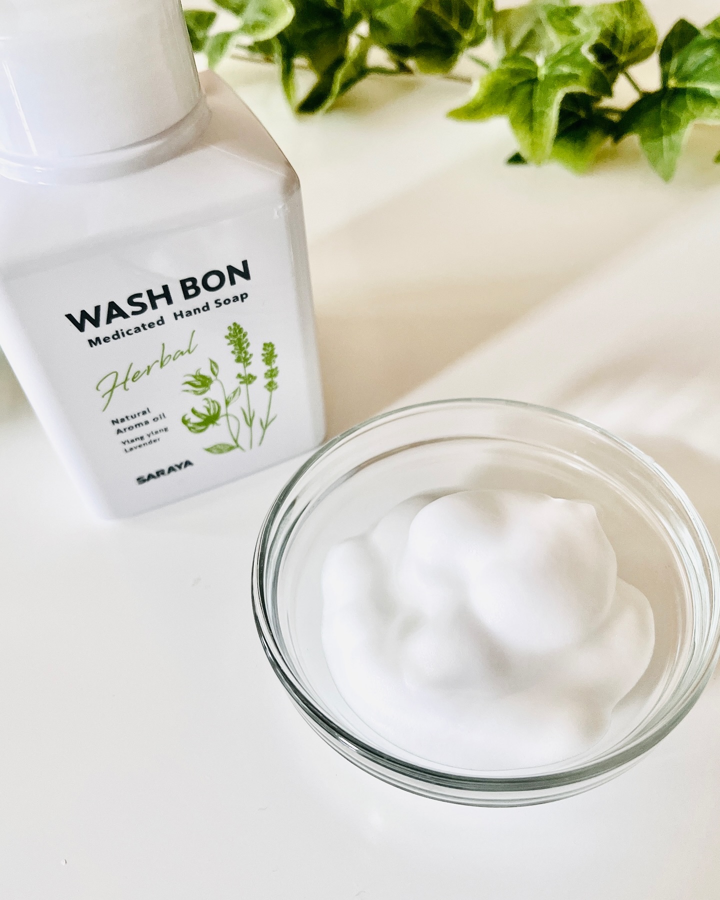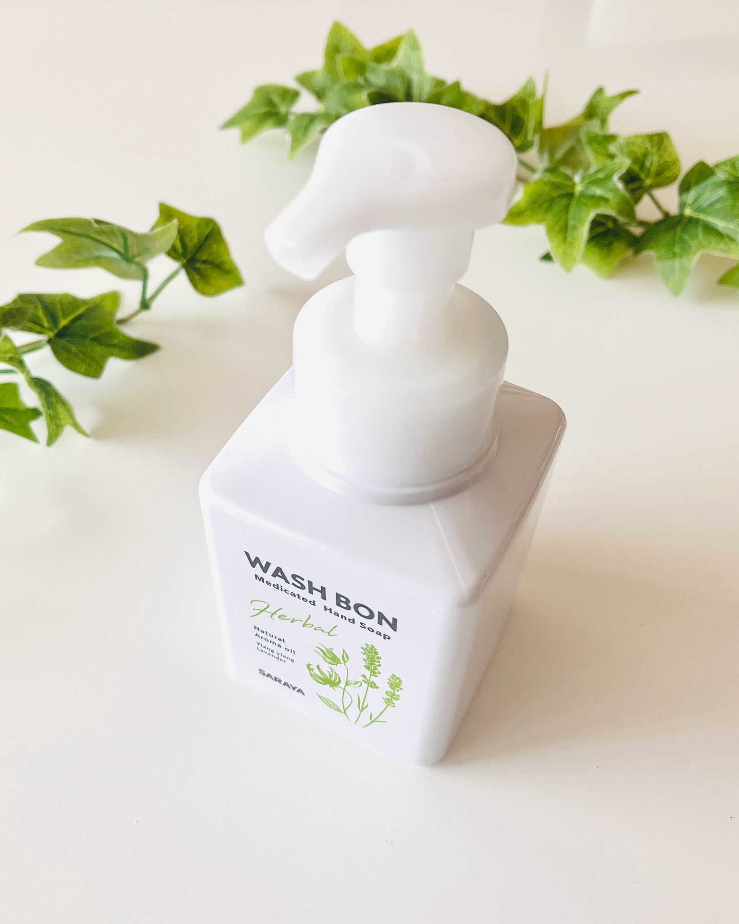 ウォシュボンハーバル薬用ハンドソープ(医薬部外品)310ml550円手を洗うことで殺菌・消毒できる、ヤシの実生まれの植物性泡ハンドソープだそう!植物性うるおい成分配合で手肌にやさしく使用できるんだって。シンプルなボトルは、洗面台...