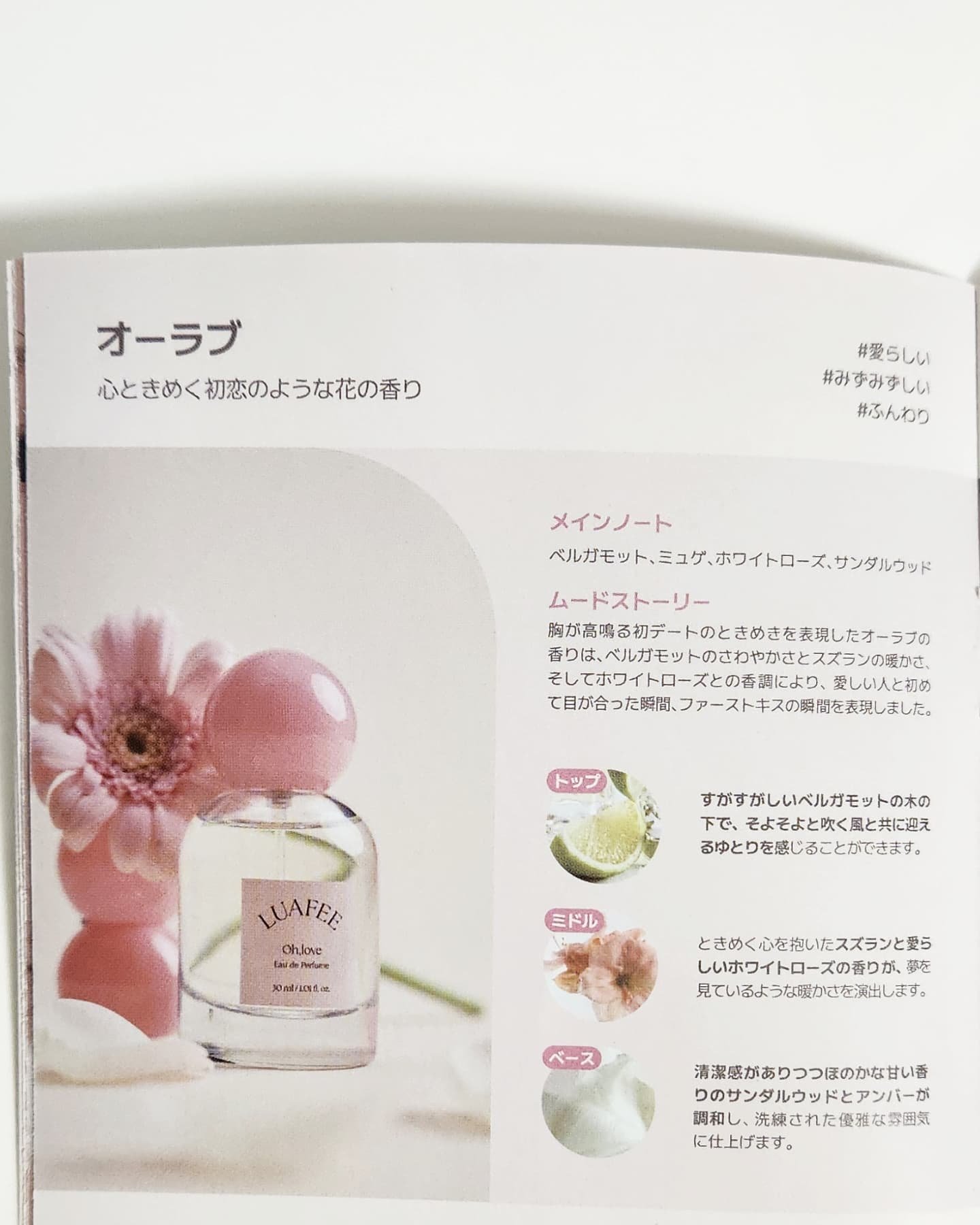 LUAFEEは韓国や日本でも大人気の香水♡ Qoo10でもよくランキングに入ってます☆ ホワイトアプリコットは、フレッシュなピーチ&アプリコットの香り♪ メインノートは、オレンジ、ピーチ、アプリコット、ジャスミン、ムスク♡ オーラブは、心ときめく初恋のような花の香り♪ メインノートは、ベルガモット、ミュゲ、ホワイトローズ、サンダルウッド♡