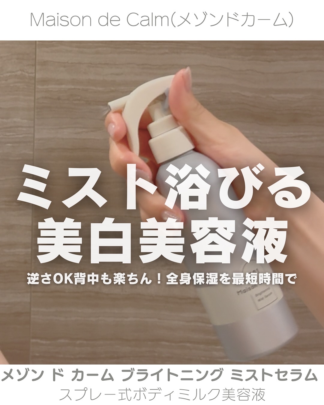 浴びる美白*1美容液🤍⌒*⌒*⌒*⌒*⌒*⌒*⌒*⌒*⌒*⌒*⌒*⌒✔️メゾンドカームブライトニングミストセラム200g¥1,320円(税込)⌒*⌒*⌒*⌒*⌒*⌒*⌒*⌒*⌒*⌒*⌒*⌒💎特長 ミストタイプのボディケア 高保湿なミルク状美...