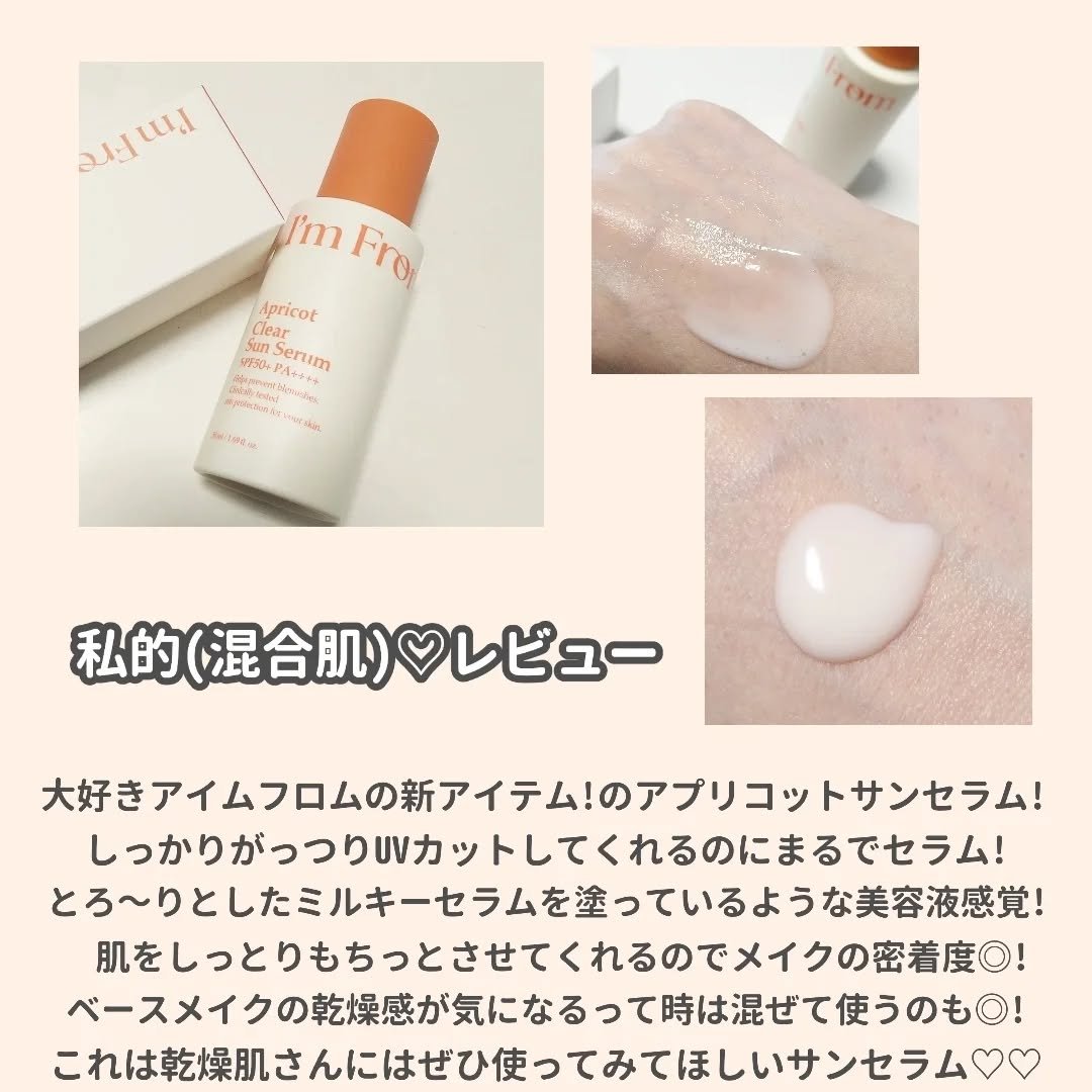UVケアにスキンケア効果まで!I'mFromアプリコットクリアサンセラムでひんやりUVケア🙌🏻🧡´-🧡I'mFromアプリコットクリアサンセラムSPF50+PA++++あんずソームコンプレックスでスキンケアもできるサンセラム☀️🧴ナイアシンア...