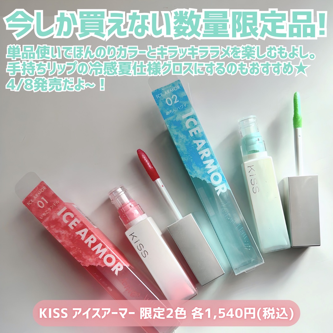 \KiSSが冷やしアーマー始めたらしい!🧊/▶︎キス アイスアーマー限定ですでに発売されているキスのアイスアーマー♡大人気のリップアーマーが夏の特別バージョンに!透明のジェル膜が唇をコートして、うるうるなツヤの仕上がりが長続き!そして名前の通...