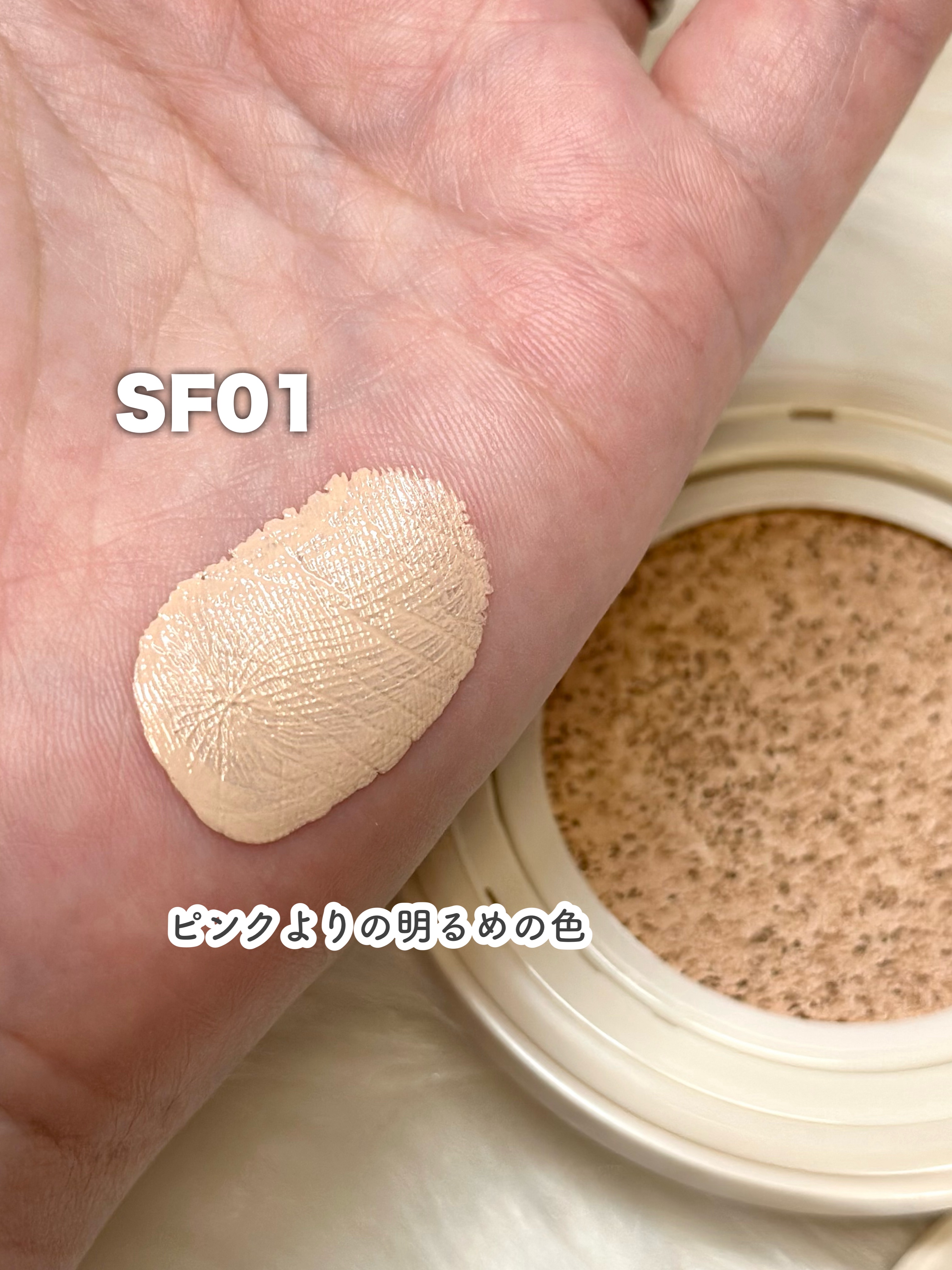 - <SF01 ライトベージュ(本体)> ジメチコン、水、酸化チタン、酸化亜鉛、BG、グリセリン、ジフェニルシロキシフェニルトリメチコン、ジカプリン酸ネオペンチルグリコール、メトキシケイヒ酸エチルヘキシル、PEG-10ジメチコン、キシリトール、イソステアリン酸、PEG-32、パルミチン酸アスコルビルリン酸3Na、ナイアシンアミド、グリシルグリシン、セラミドNG、セラミドNP、セラミドAP、セルロース、EDTA-2Na、キサンタンガム、クオタニウム-18ヘクトライト、ステアリン酸Mg、セスキイソステアリン酸ソルビタン、トリメチルシロキシケイ酸、ノイバラ果実エキス、ハイドロゲンジメチコン、フィトステロールズ、ラウロイルグルタミン酸Na、リシン、塩化Mg、水酸化Al、水添レシチン、硫酸Mg、フェノキシエタノール、マイカ、合成フルオロフロゴパイト、酸化鉄 <SF02 ミディアムベージュ(本体)> ジメチコン、水、酸化チタン、酸化亜鉛、BG、グリセリン、ジフェニルシロキシフェニルトリメチコン、ジカプリン酸ネオペンチルグリコール、メトキシケイヒ酸エチルヘキシル、PEG-10ジメチコン、キシリトール、イソステアリン酸、PEG-32、パルミチン酸アスコルビルリン酸3Na、ナイアシンアミド、グリシルグリシン、セラミドNG、セラミドNP、セラミドAP、セルロース、EDTA-2Na、キサンタンガム、クオタニウム-18ヘクトライト、ステアリン酸Mg、セスキイソステアリン酸ソルビタン、トリメチルシロキシケイ酸、ノイバラ果実エキス、ハイドロゲンジメチコン、フィトステロールズ、ラウロイルグルタミン酸Na、リシン、塩化Mg、水酸化Al、水添レシチン、硫酸Mg、フェノキシエタノール、マイカ、合成フルオロフロゴパイト、酸化鉄 <SF03 ナチュラルベージュ(本体)> ジメチコン、水、酸化チタン、酸化亜鉛、BG、グリセリン、ジフェニルシロキシフェニルトリメチコン、ジカプリン酸ネオペンチルグリコール、メトキシケイヒ酸エチルヘキシル、PEG-10ジメチコン、キシリトール、イソステアリン酸、PEG-32、パルミチン酸アスコルビルリン酸3Na、ナイアシンアミド、グリシルグリシン、セラミドNG、セラミドNP、セラミドAP、セルロース、EDTA-2Na、キサンタンガム、クオタニウム-18ヘクトライト、ステアリン酸Mg、セスキイソステアリン酸ソルビタン、トリメチルシロキシケイ酸、ノイバラ果実エキス、ハイドロゲンジメチコン、フィトステロールズ、ラウロイルグルタミン酸Na、リシン、塩化Mg、水酸化Al、水添レシチン、硫酸Mg、フェノキシエタノール、マイカ、合成フルオロフロゴパイト、酸化鉄 <SF01 ライトベージュ(リフィル)> ジメチコン、水、酸化チタン、酸化亜鉛、BG、グリセリン、ジフェニルシロキシフェニルトリメチコン、ジカプリン酸ネオペンチルグリコール、メトキシケイヒ酸エチルヘキシル、PEG-10ジメチコン、キシリトール、イソステアリン酸、PEG-32、パルミチン酸アスコルビルリン酸3Na、ナイアシンアミド、グリシルグリシン、セラミドNG、セラミドNP、セラミドAP、セルロース、EDTA-2Na、キサンタンガム、クオタニウム-18ヘクトライト、ステアリン酸Mg、セスキイソステアリン酸ソルビタン、トリメチルシロキシケイ酸、ノイバラ果実エキス、ハイドロゲンジメチコン、フィトステロールズ、ラウロイルグルタミン酸Na、リシン、塩化Mg、水酸化Al、水添レシチン、硫酸Mg、フェノキシエタノール、マイカ、合成フルオロフロゴパイト、酸化鉄 <SF02 ミディアムベージュ(リフィル)> ジメチコン、水、酸化チタン、酸化亜鉛、BG、グリセリン、ジフェニルシロキシフェニルトリメチコン、ジカプリン酸ネオペンチルグリコール、メトキシケイヒ酸エチルヘキシル、PEG-10ジメチコン、キシリトール、イソステアリン酸、PEG-32、パルミチン酸アスコルビルリン酸3Na、ナイアシンアミド、グリシルグリシン、セラミドNG、セラミドNP、セラミドAP、セルロース、EDTA-2Na、キサンタンガム、クオタニウム-18ヘクトライト、ステアリン酸Mg、セスキイソステアリン酸ソルビタン、トリメチルシロキシケイ酸、ノイバラ果実エキス、ハイドロゲンジメチコン、フィトステロールズ、ラウロイルグルタミン酸Na、リシン、塩化Mg、水酸化Al、水添レシチン、硫酸Mg、フェノキシエタノール、マイカ、合成フルオロフロゴパイト、酸化鉄 <SF03 ナチュラルベージュ(リフィル )> ジメチコン、水、酸化チタン、酸化亜鉛、BG、グリセリン、ジフェニルシロキシフェニルトリメチコン、ジカプリン酸ネオペンチルグリコール、メトキシケイヒ酸エチルヘキシル、PEG-10ジメチコン、キシリトール、イソステアリン酸、PEG-32、パルミチン酸アスコルビルリン酸3Na、ナイアシンアミド、グリシルグリシン、セラミドNG、セラミドNP、セラミドAP、セルロース、EDTA-2Na、キサンタンガム、クオタニウム-18ヘクトライト、ステアリン酸Mg、セスキイソステアリン酸ソルビタン、トリメチルシロキシケイ酸、ノイバラ果実エキス、ハイドロゲンジメチコン、フィトステロールズ、ラウロイルグルタミン