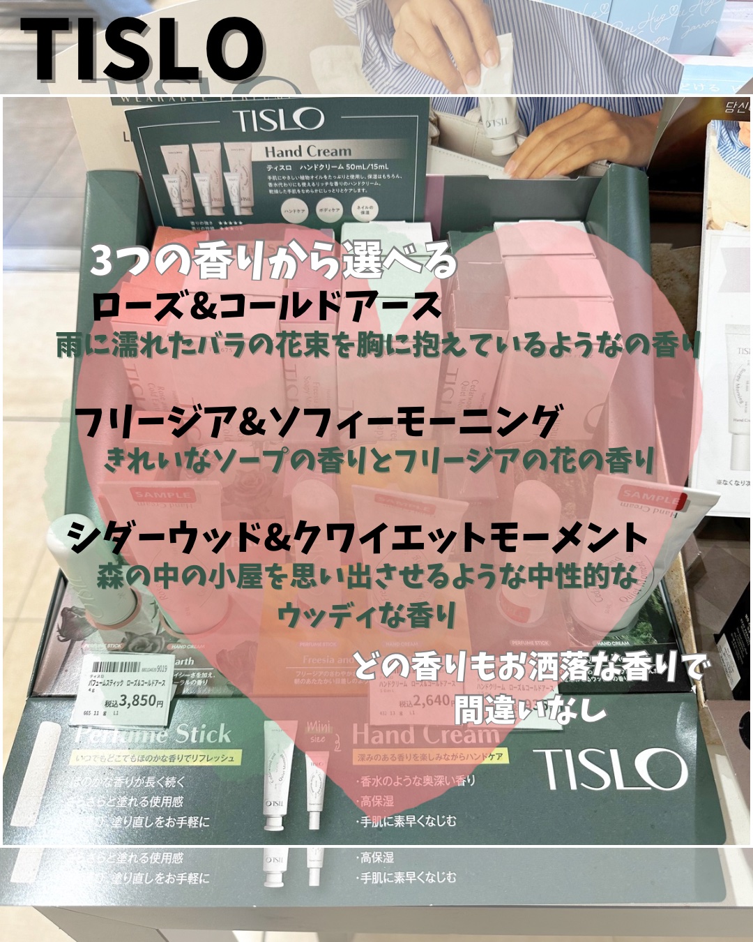 香水のように華やかに香るハンドクリームTISLO!香りが3つあるので、LOFTに嗅ぎに行ってきました。笑 フリージア&ソフィーモーニングにしました!なんというか、一番なじみやすい香りがした! ハンドクリームでも良い香りがほんのり続くので、ふとした時に癒されるー♡