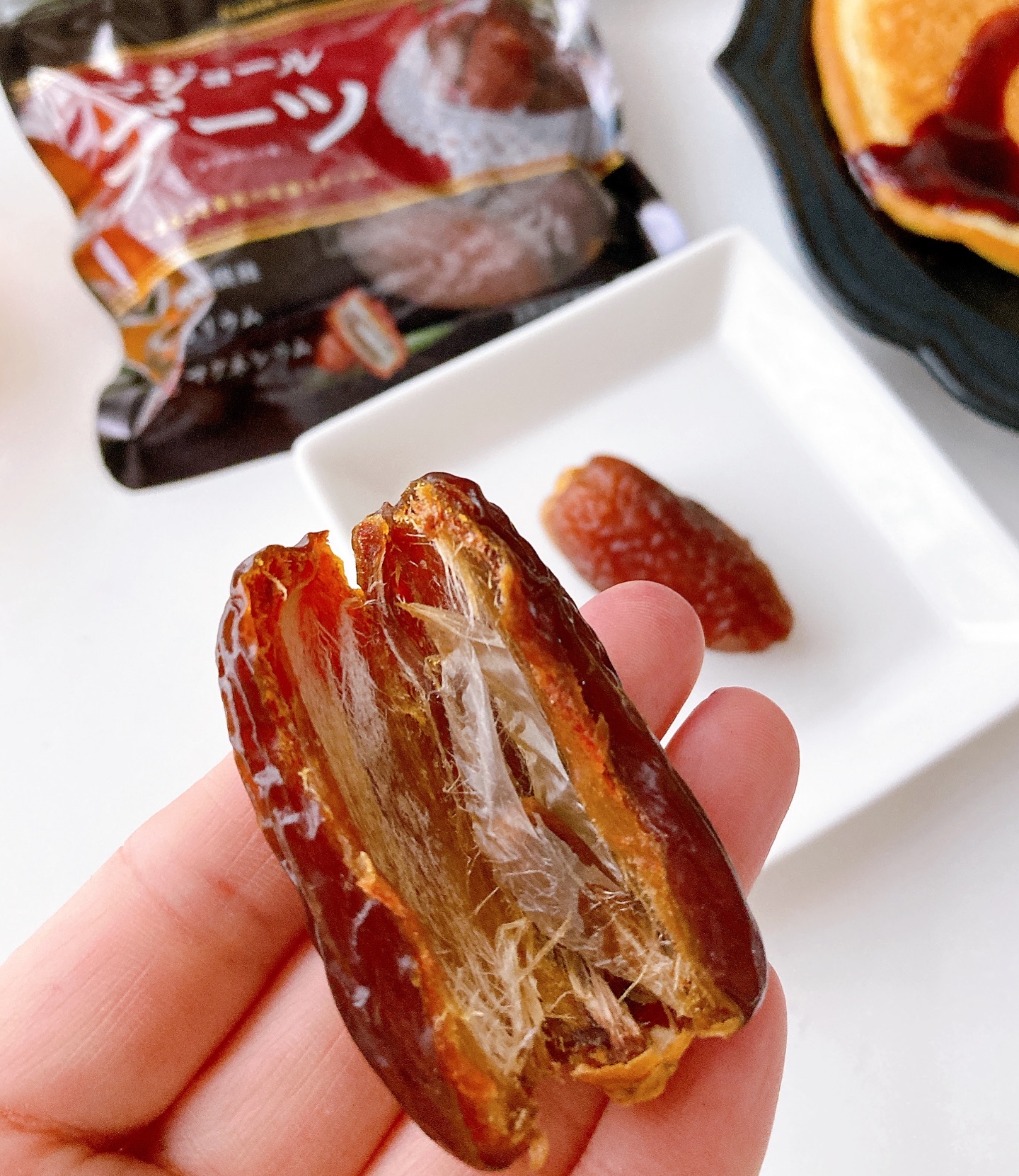 デーツは、「なつめやし」の実! 古代から砂漠の民に愛されてきた果実なんです😳 食物繊維、カリウムやマグネシウムなどの ミネラルを含み、素材そのままの優しい甘み☺️ 食物繊維は腸内環境の改善 カリウムは浮腫みが気になる人におすすめな栄養素! 実はデーツが原材料として40年以上使われているんです🙆♀️ ねっとりとした果実は、 ドライいちじくやプルーンに似てる! このマジョール種の特徴は、大粒で上品な甘み🤤 ちなみにデーツは実った樹上で完熟する ドライフルーツらしい🤔