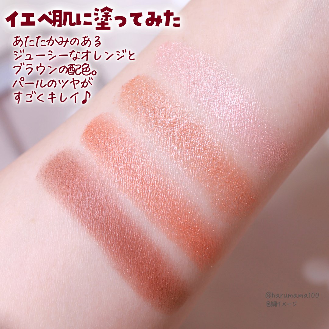 - <06 トパーズピンク> 合成フルオロフロゴパイト、タルク、アルミナ、ジフェニルシロキシフェニルトリメチコン、水添ポリデセン、硫酸Ba、(イソステアリン酸ポリグリセリル-2/ダイマージリノール酸)コポリマー、ジメチコン、ジステアリン酸Al、メチルパラベン、ステアリン酸Mg、シリカ、トコフェロール、ホホバ種子油、アンズ核油、BG、水、ヒアルロン酸Na、カミツレ花エキス、マイカ、酸化鉄、酸化チタン、ホウケイ酸(Ca/Al)、グンジョウ、酸化スズ、赤226 <07 ネクタリンオレンジ> 合成フルオロフロゴパイト、アルミナ、タルク、ジフェニルシロキシフェニルトリメチコン、水添ポリデセン、硫酸Ba、(イソステアリン酸ポリグリセリル-2/ダイマージリノール酸)コポリマー、ジメチコン、ジステアリン酸Al、メチルパラベン、ステアリン酸Mg、シリカ、トコフェロール、ホホバ種子油、アンズ核油、BG、水、ヒアルロン酸Na、カミツレ花エキス、マイカ、酸化チタン、酸化鉄、ホウケイ酸(Ca/Al)、酸化スズ、赤226、グンジョウ <10 スウィートラブレター> 合成フルオロフロゴパイト、アルミナ、タルク、ジフェニルシロキシフェニルトリメチコン、水添ポリデセン、(イソステアリン酸ポリグリセリル-2/ダイマージリノール酸)コポリマー、ジメチコン、硫酸Ba、ジステアリン酸Al、シリカ、メチルパラベン、ステアリン酸Mg、トコフェロール、ホホバ種子油、アンズ核油、BG、水、ヒアルロン酸Na、カミツレ花エキス、マイカ、酸化チタン、酸化鉄、ホウケイ酸(Ca/Al)、グンジョウ、酸化スズ、赤226 <12 モーニングビオラ> 合成フルオロフロゴパイト、タルク、ジフェニルシロキシフェニルトリメチコン、アルミナ、水添ポリデセン、硫酸Ba、(イソステアリン酸ポリグリセリル-2/ダイマージリノール酸)コポリマー、ジメチコン、ジステアリン酸Al、メチルパラベン、シリカ、ステアリン酸Mg、トコフェロール、水酸化Al、ホホバ種子油、アンズ核油、BG、水、ヒアルロン酸Na、カミツレ花エキス、ホウケイ酸(Ca/Al)、マイカ、酸化チタン、グンジョウ、酸化鉄、赤226、酸化スズ、コンジョウ、青404 <04 サンセットデート> タルク、合成フルオロフロゴパイト、アルミナ、ジフェニルシロキシフェニルトリメチコン、水添ポリデセン、硫酸Ba、(イソステアリン酸ポリグリセリル-2/ダイマージリノール酸)コポリマー、ジメチコン、ジステアリン酸Al、メチルパラベン、シリカ、ステアリン酸Mg、トコフェロール、ホホバ種子油、アンズ核油、BG、水、ヒアルロン酸Na、カミツレ花エキス、マイカ、酸化鉄、酸化チタン、グンジョウ、ホウケイ酸(Ca/Al)、酸化スズ、赤226 <06 トパーズピンク(桜の限定パッケージ)> 合成フルオロフロゴパイト、タルク、アルミナ、ジフェニルシロキシフェニルトリメチコン、水添ポリデセン、硫酸Ba、(イソステアリン酸ポリグリセリル-2/ダイマージリノール酸)コポリマー、ジメチコン、ジステアリン酸Al、メチルパラベン、ステアリン酸Mg、シリカ、トコフェロール、ホホバ種子油、アンズ核油、BG、水、ヒアルロン酸Na、カミツレ花エキス、マイカ、酸化鉄、酸化チタン、ホウケイ酸(Ca/Al)、グンジョウ、酸化スズ、赤226 <10 スウィートラブレター(桜の限定パッケージ)> 合成フルオロフロゴパイト、アルミナ、タルク、ジフェニルシロキシフェニルトリメチコン、水添ポリデセン、(イソステアリン酸ポリグリセリル-2/ダイマージリノール酸)コポリマー、ジメチコン、硫酸Ba、ジステアリン酸Al、シリカ、メチルパラベン、ステアリン酸Mg、トコフェロール、ホホバ種子油、アンズ核油、BG、水、ヒアルロン酸Na、カミツレ花エキス、マイカ、酸化チタン、酸化鉄、ホウケイ酸(Ca/Al)、グンジョウ、酸化スズ、赤226