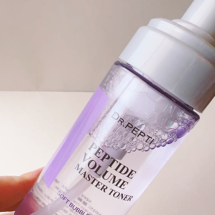DR.PEPTIペプチドボリュームマスタートナーペプチドスピキュールポアソリューションセラム毛穴・ハリ・キメケアしたい方にオススメ💜✔︎︎︎︎ペプチドボリュームマスタートナーやわらかいバブルででてくるトナー。PHA成分で角質ケアもできちゃうよ...