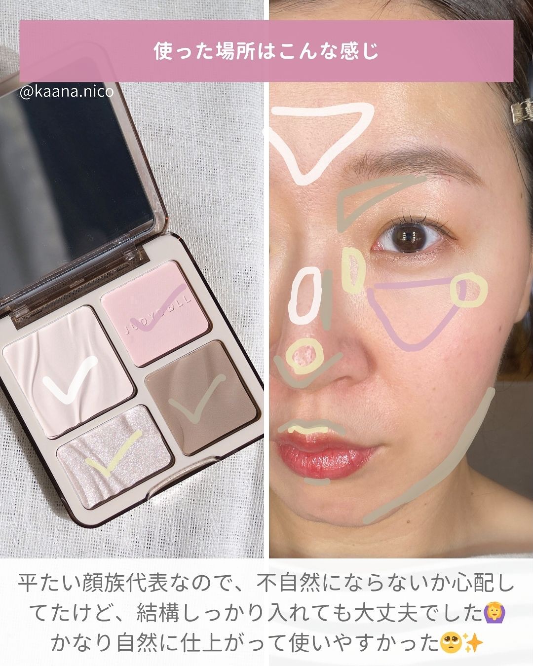 【JUDYDOLL メリハリマスターパレット#04Nニュートラルトーン】このパレット一つでシェーディング、ハイライト、血色感まで✨発色は控えめでぼかしやすい粉質は柔らかくて肌に馴染みやすいのも◎ただ、④の発色はもう少しあっても良いかなぁ?と思...