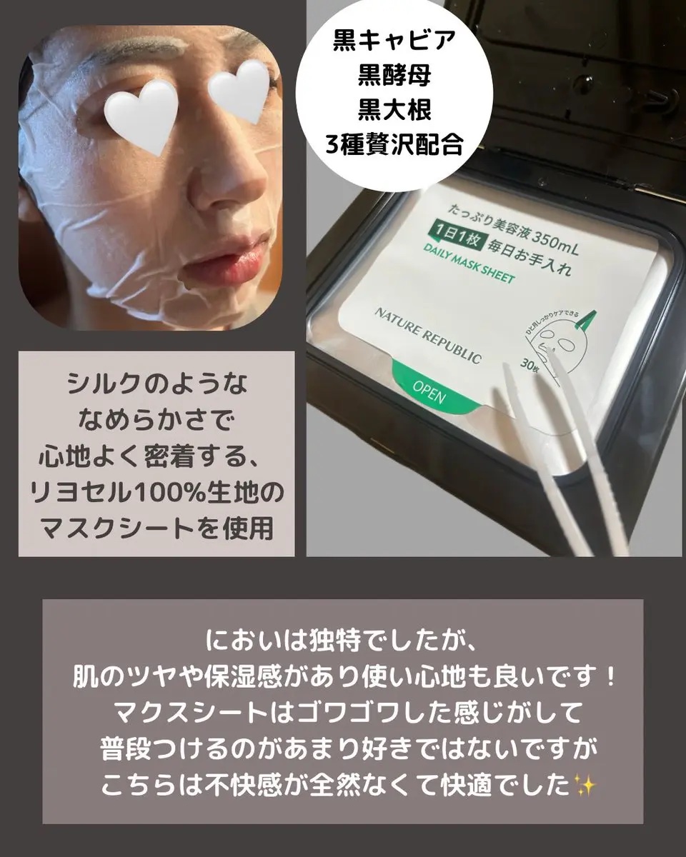 ネイチャーリパブリックブラックPDRNデイリーシートマスク#提供#PRネイチャーリパブリックさまからいただきました!#ブラックPDRN新作のシートマスクをひと足先にお試しさせていただきました!とろみのあるテクスチャの美容液がたっぷりで、高保湿...