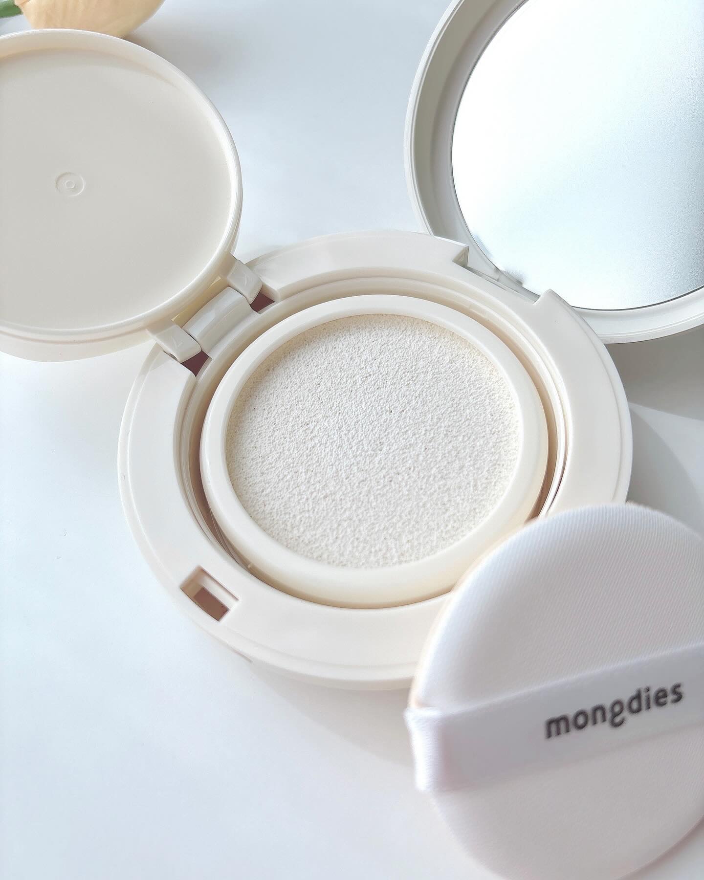韓国No.1の赤ちゃんスキンケアブランド👩🍼モンディエス紫外線が気になる季節にぴったりのおすすめベビースキンケアモンディエス日焼け止めクッション100%ノンケミカルSPF43PA+++自然由来成分使用ヴィーガン処方の水分UVク...