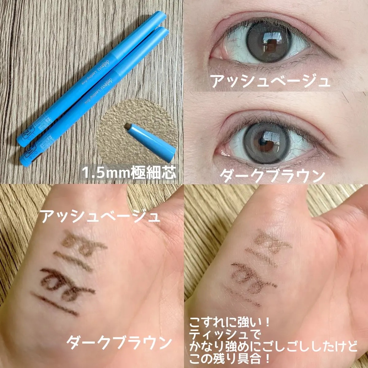 - ”なめらかなのに にじまない”クリームペンシル極細芯タイプ ・史上最細!*直径1.5㎜の超極細芯 ・自然なラインが長時間続く**スーパーウォータープルーフタイプ ・肌当たりが非常にやさしく、なめらかに描ける処方を採用 *ブランド内において **効果には個人差があります