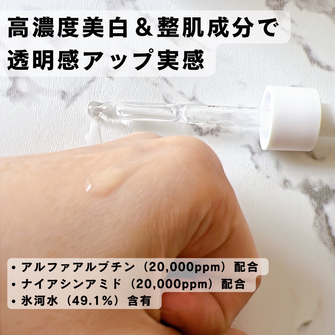 - 整肌成分アルファアルブチン20,000PPM配合、肌に優しい使い心地で明るくしっとりまぶしい肌印象に仕上げる整肌セラム