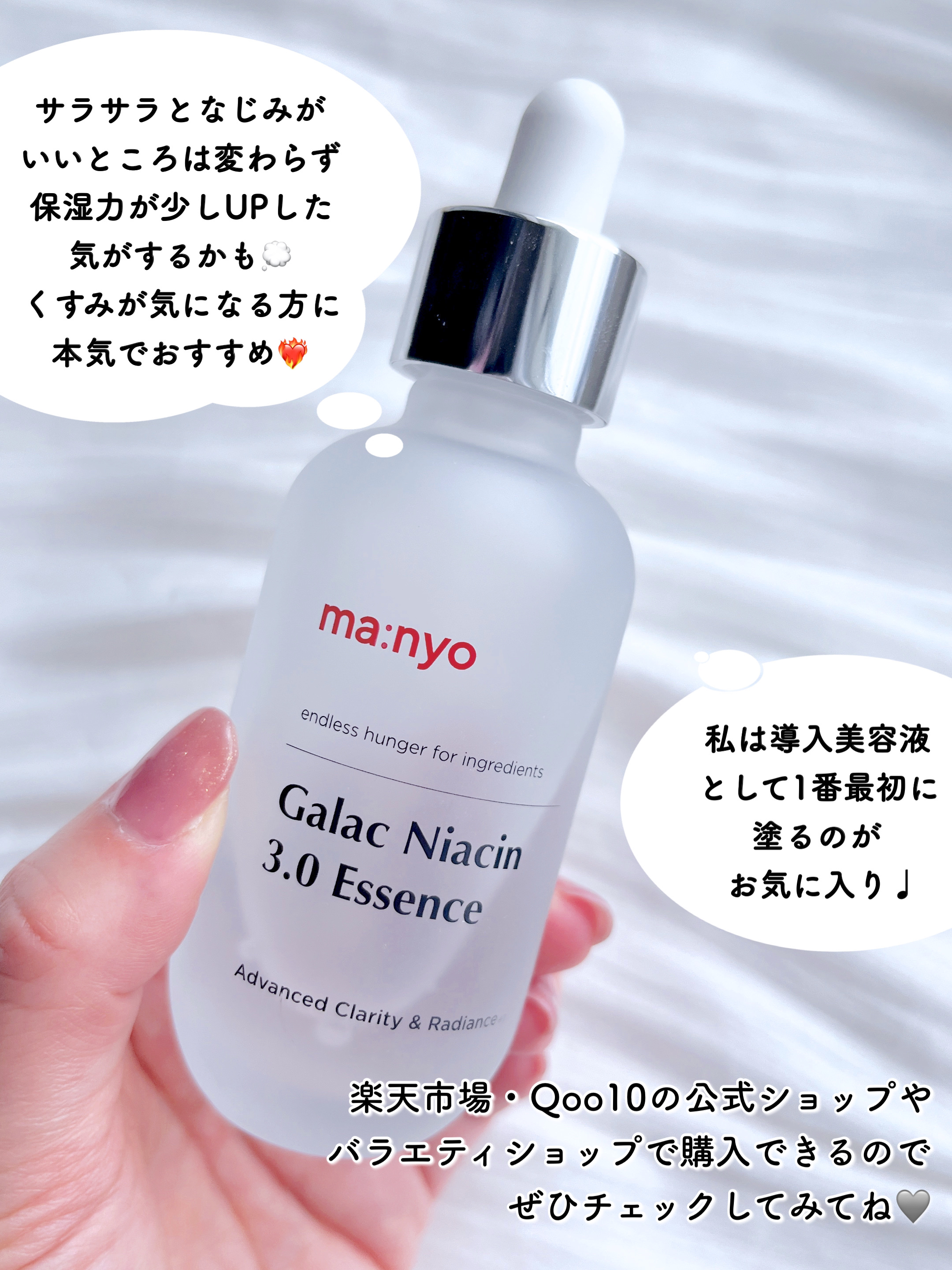 manyoさまからいただきました!ガラクナイアシン3.0エッセンスは、ガラクトミセス×ナイアシンアミド(*整肌成分)配合の美容液。2.0が大人気でしたが、この度3.0となってリニューアル🌷シャバシャバでとろみは全くなく、まるで水。肌タイプを問...