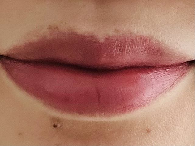 チョコレートの香り付き。香りのあるコスメがあまり得意ではない私だけど、個人的にはそこまで気にならなくて〇。 こちらを塗った後、唇のしわが気にならなくなるのがすごい\(◎o◎)/! 塗った後はさらっと密着感があり落ちにくいけど、オイルで落としにくいということもなく、良かったです☆ なんともいえない、ピンクともブラウンとも言い難い絶妙なくすみカラーだと思いました!