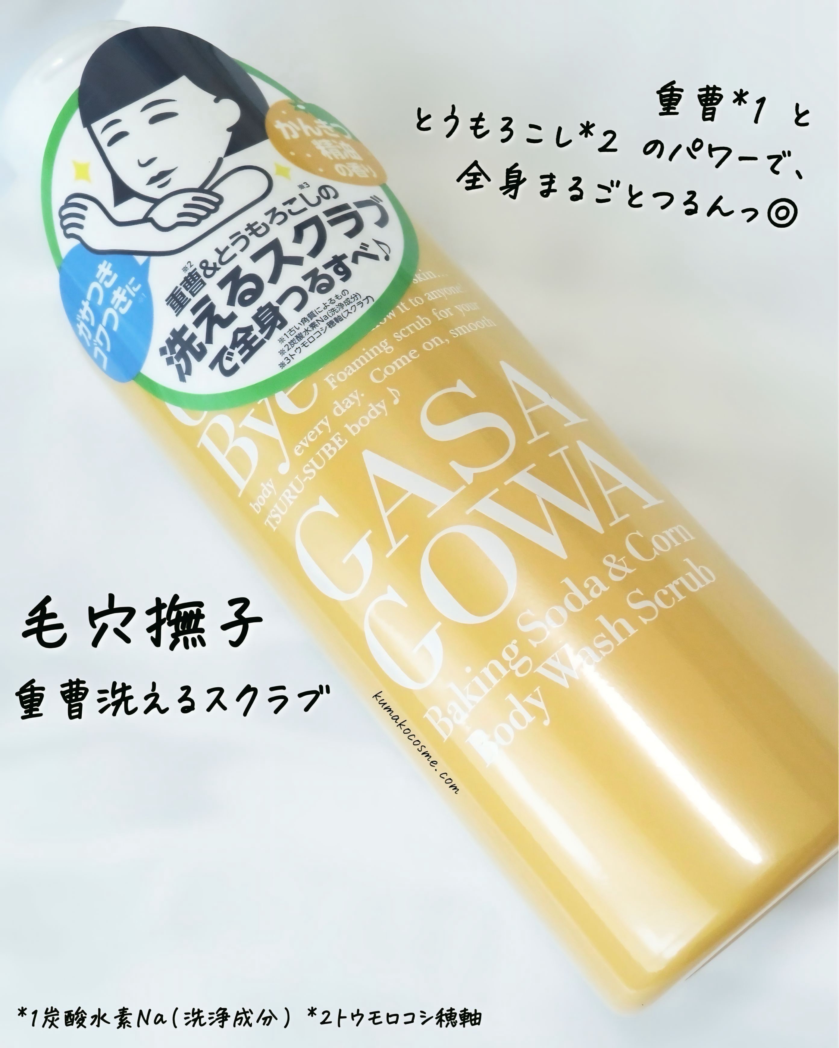 - ブツブツ二の腕にザラザラかかと・・・気になる全身のガサつき・ゴワつき*1は重曹*2&とうもろこし*3の洗えるスクラブで丸ごとつるんっ♪ 重曹が角質をゆるめ汚れを浮かせ、とうもろこしのやわらかスクラブでやさしい使い心地で磨きます。 思わず撫でたくなるようなつるすべボディに。 しっかり泡立てるとボディソープにもなる1本2役。毎日使えます。 かんきつ精油の香り。 *1 古い角質によるもの *2 炭酸水素Na(洗浄成分) *3 トウモロコシ穂軸