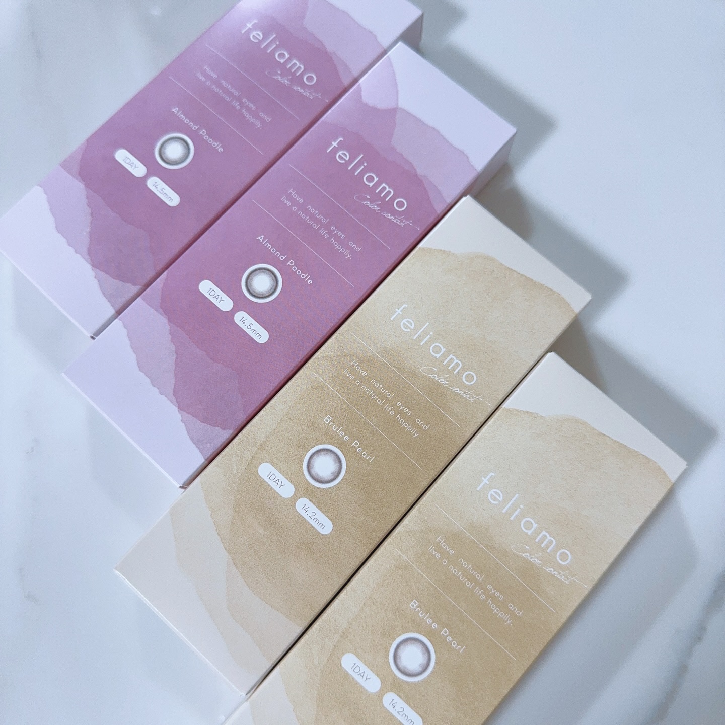 feliamoから待望の新色が4/18(金)〜発売💖#1day#1month同時発売✨⚫︎AImondPoodle(アーモンドプードル)DIA14.5mm着色直径13.7mm色素薄い系ちゅるんカラコン!瞳に馴染み、細フチでナチュラルに盛れる🤍...