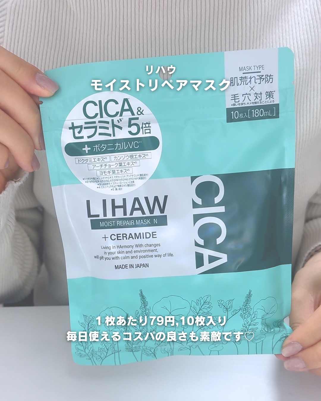LIHAWモイストリペアマスク『LIHAW』肌荒れ予防とうるおい透明肌へ 導くシートマスクがさらに進化! LIHAW共通成分4種のCICAエキス、植物エキス、セラミドが配合され、 乾燥・肌あれにアプローチ。 ボタニカルVCとアーチチョーク葉...