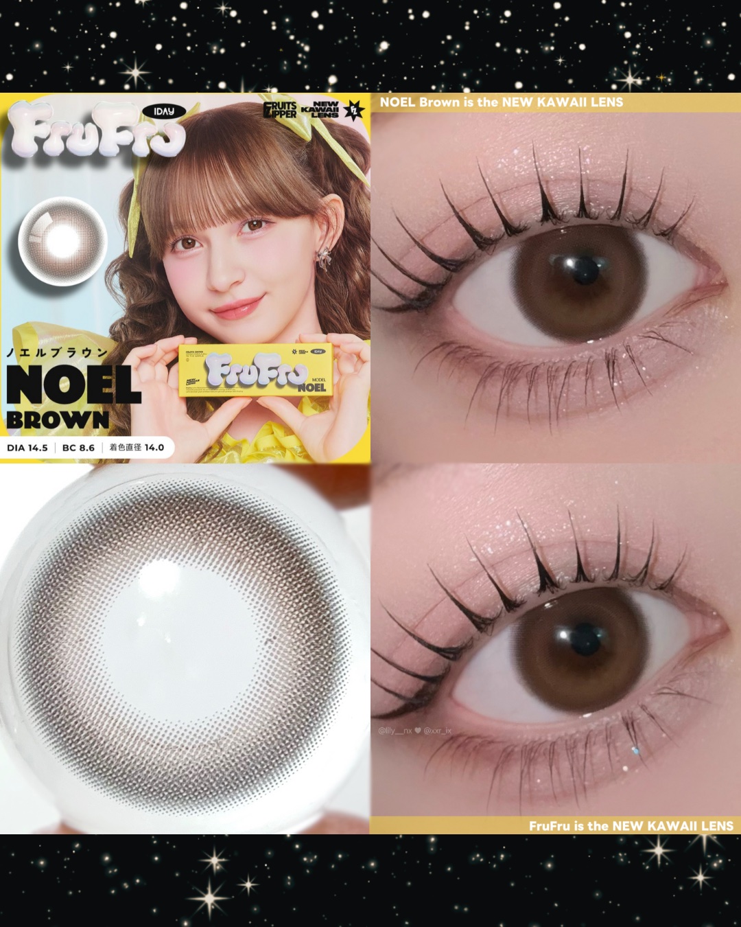 【FruFru】\🍇🍉🍊4/22(火)新発売🍑🍎🥝/待望のFRUITSZIPPERプロデュースカラコン「FruFru(フルフル)」がキャンマジ公式ショップ限定で4/15(火)予約発売スタート!💚YUIBROWN着色直径:13.6mm⇒細い黒フ...