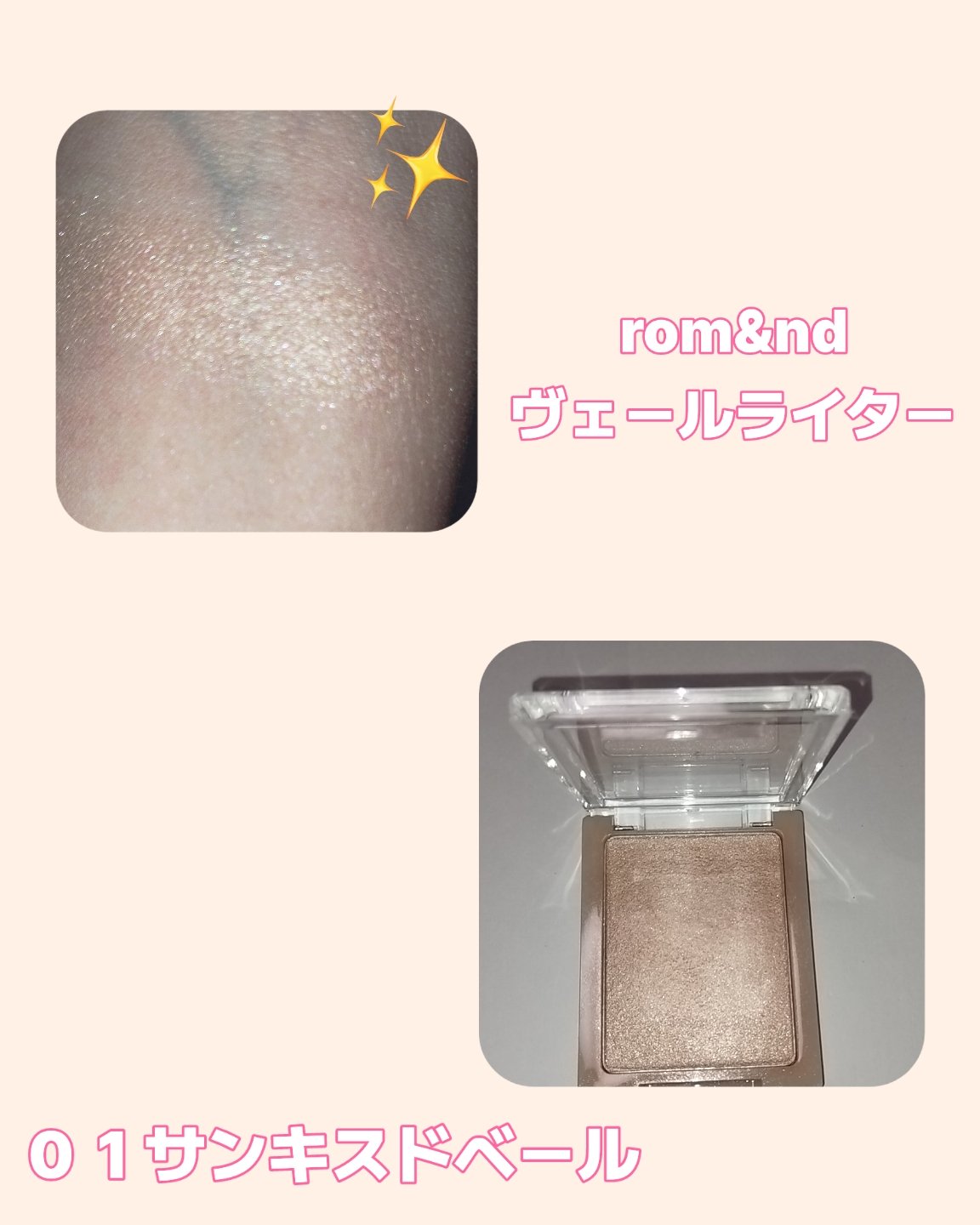 rom&ndヴェールライター02ムーンキスドベールmoonkissedveil🎀ピンク色の艶で、多幸感溢れる肌にしてくれます。チークの代わりや涙袋に使っても可愛いです。チークと鼻の頭にぬると統一感が出るからおすすめ✨バズっただけあるよね!いつ...