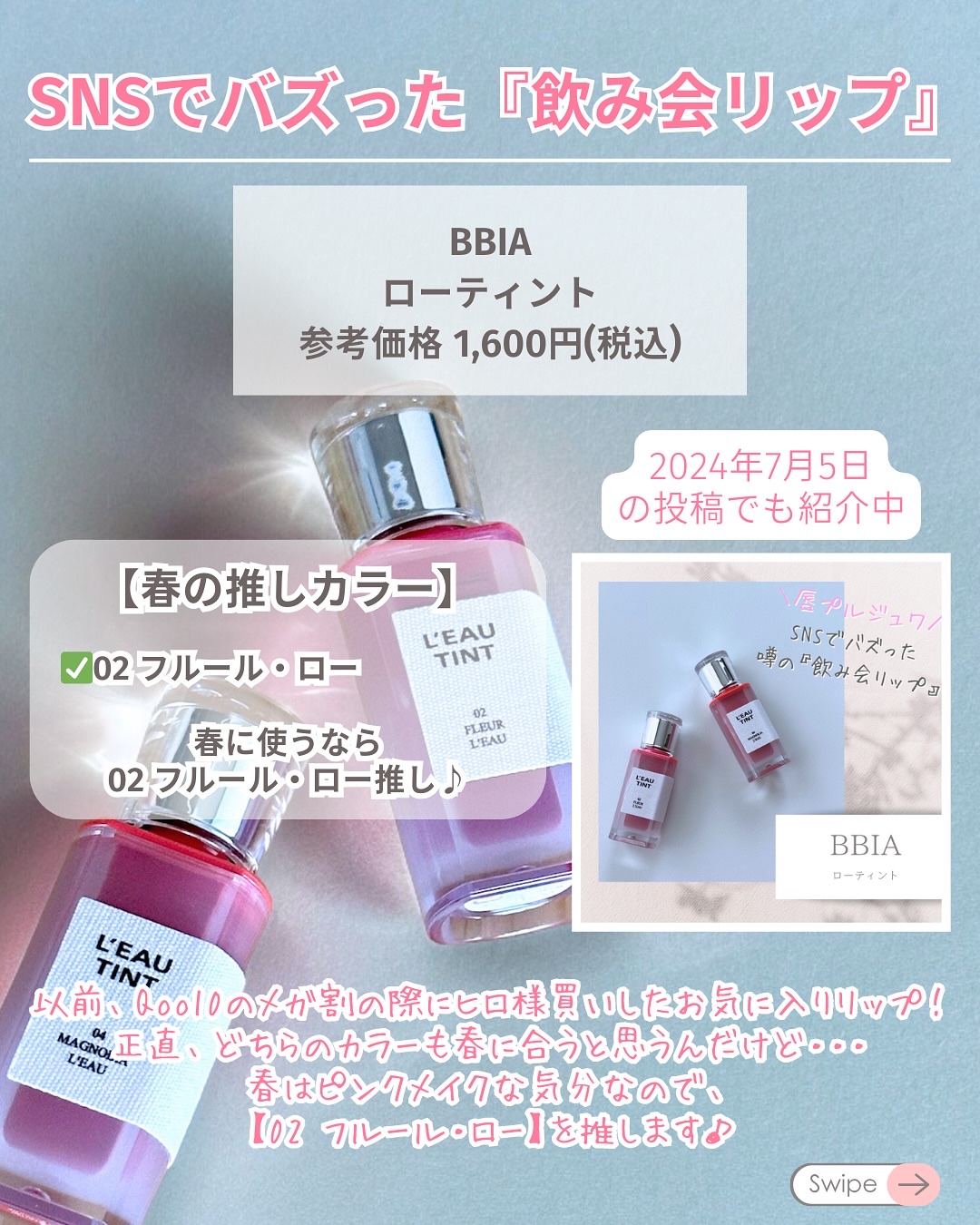 \BBIA飲み会リップ🍷/メゾピアノコラボが可愛すぎて買ってしまった🥹🩷乾燥は少し気になるけど色落ちしなくて食事後も色残ってた💄✨#飲み会リップ#bbia#韓国コスメ#韓国リップ...
