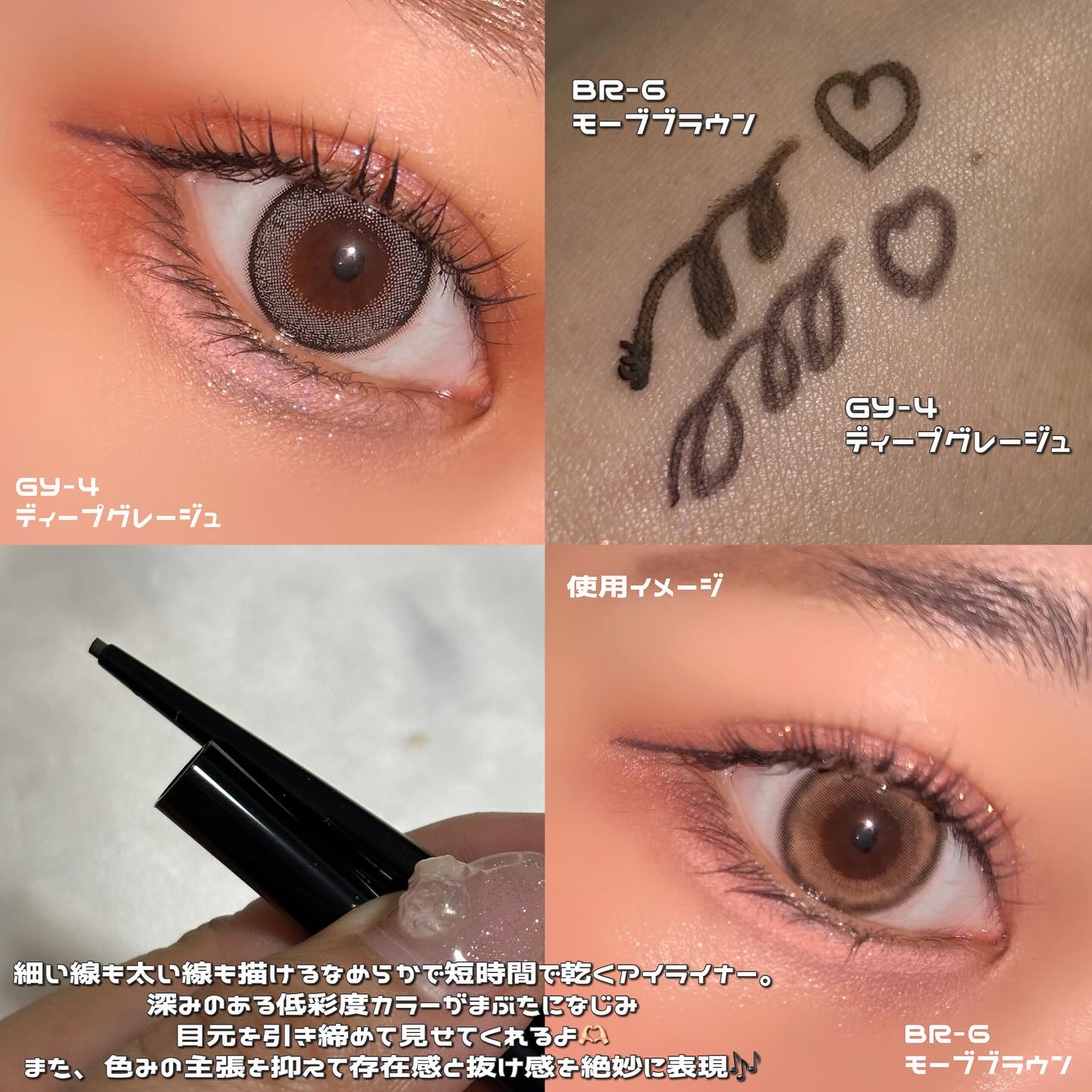 - とろける描き心地からわずか10秒で速乾、ピタッと密着。 号泣してこすっても落ちにくい 極細芯ジェルアイライナー ■1.5mm極細芯 ■汗・水・涙に強い、ウォータープルーフタイプ ■皮脂・こすれに強い、スマッジプルーフタイプ ■くっきり濃い発色や軽さのあるニュアンス発色の色展開