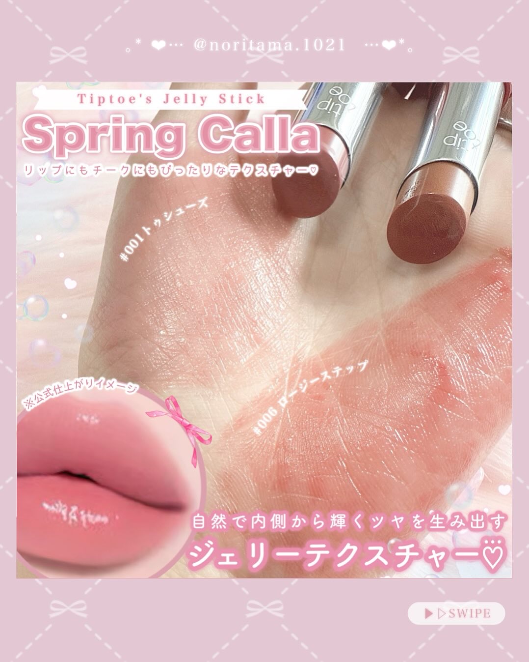 新感覚✨6色のカラーが30%、70%の2パターン展開で濃度が選べる😳 プランパー効果があるから、ボリューム感がでて縦じわの目立たない理想的なうるうるリップに… 発色はもちろん、グロス特有のベタつきがなくぷるんと仕上げてくれて乾燥しない使い心地のよさもお気に入り🥹💓