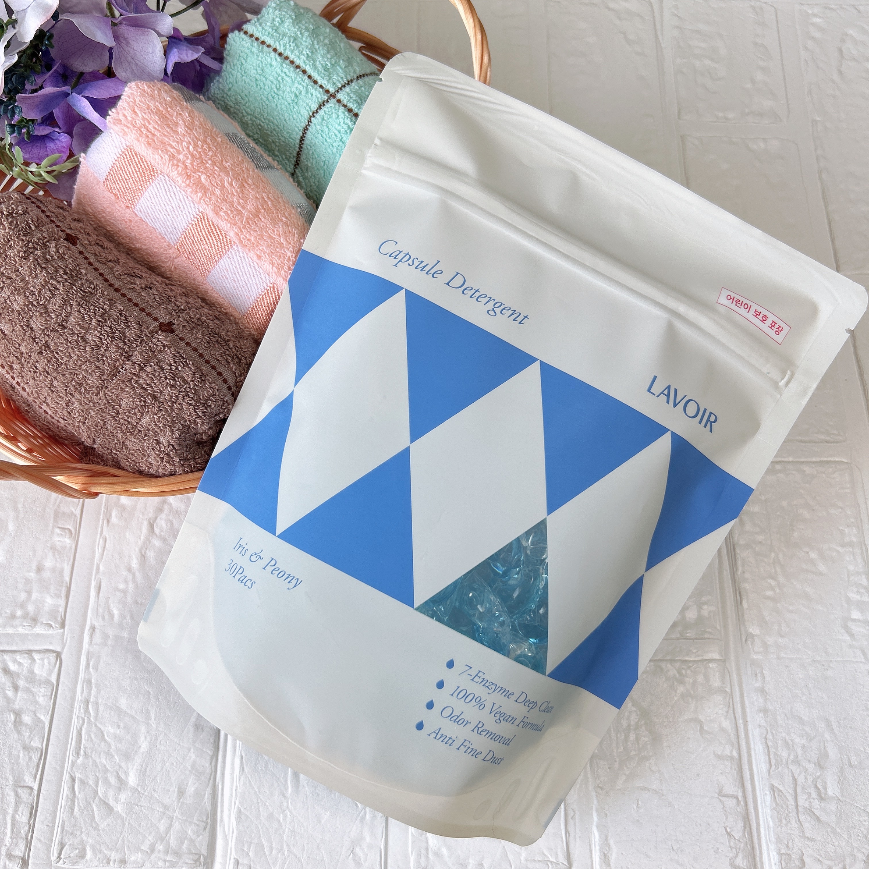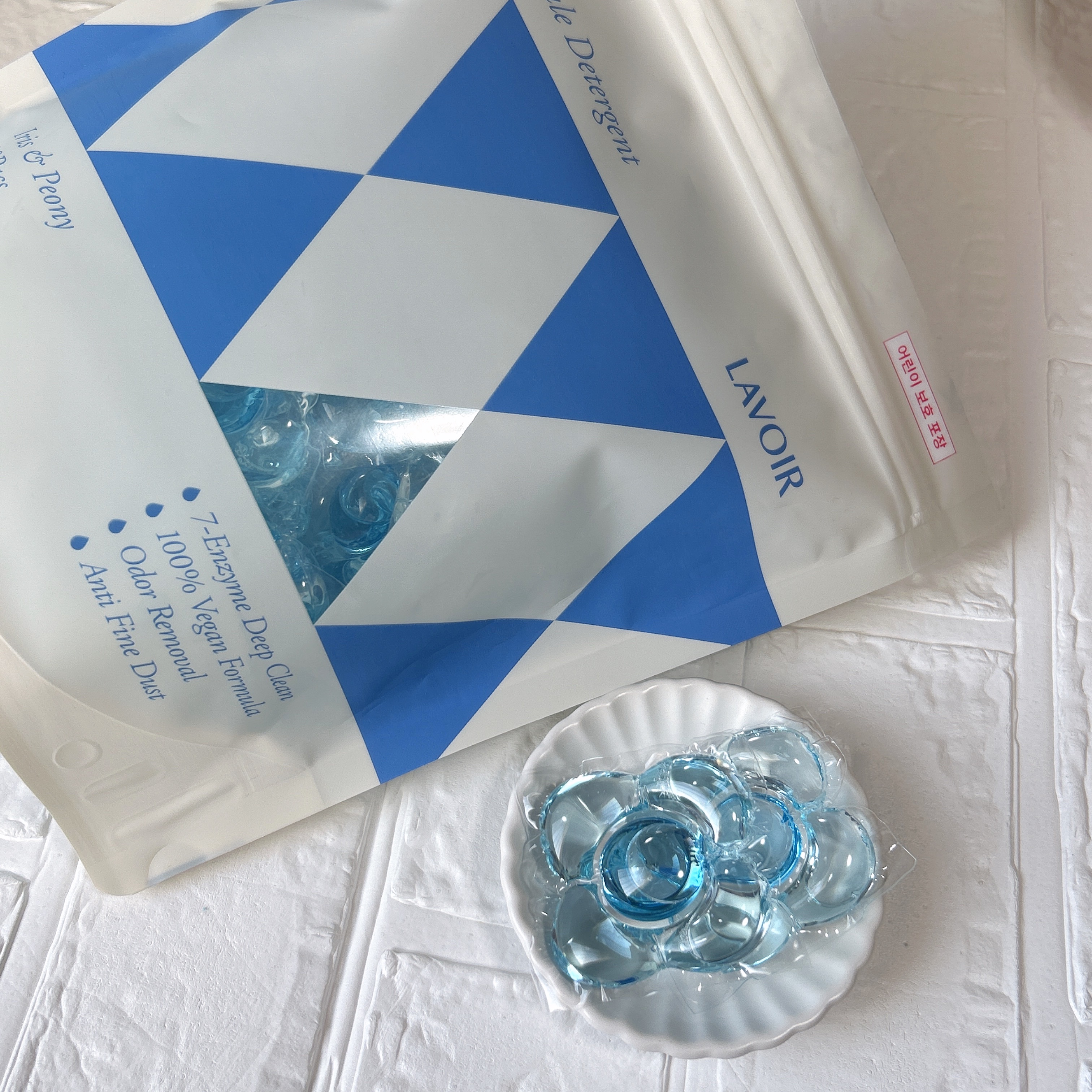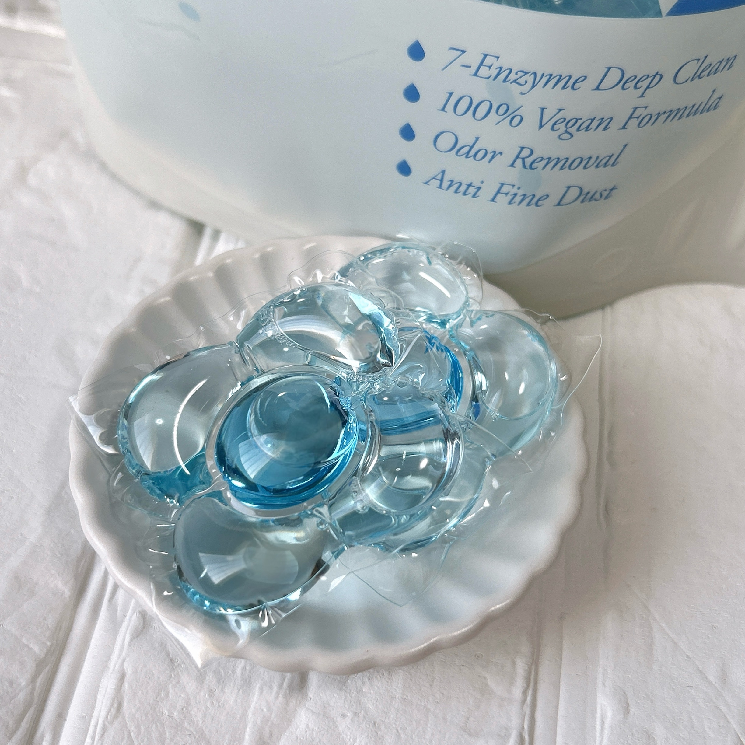 強力な洗浄力と部屋干しまで一粒に!❁部屋干し:ベーキングソーダで匂いの元を99%消臭 おしゃれなフローラル石鹸の香りで柔軟剤の香りをブースティング効果 見た目から可愛らしいおしゃれな洗剤です。カプセル一つ入れるだけで洗濯ができるので手間要らずで簡単です。