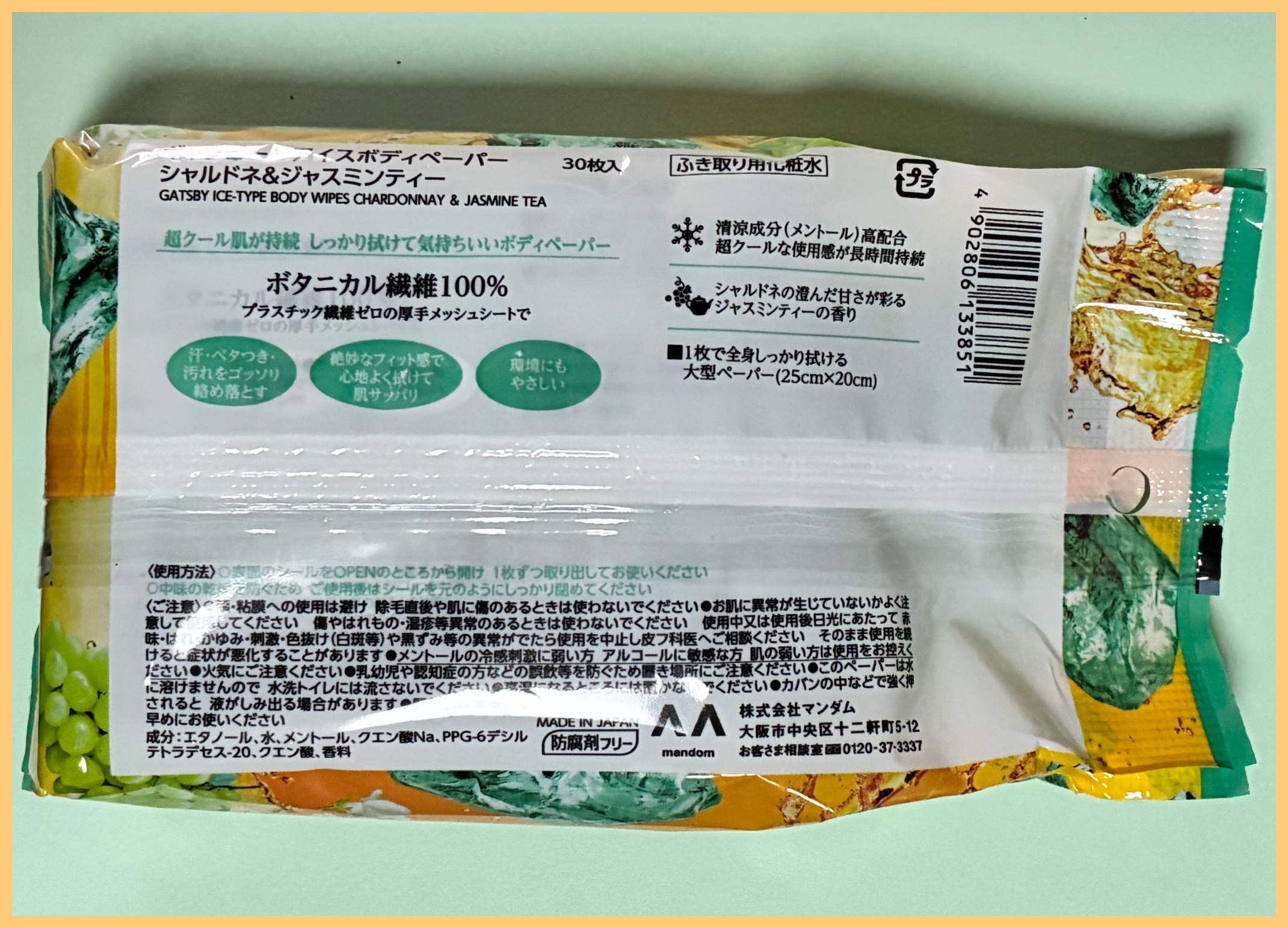 商品詳細情報ギャツビー アイスボディペーパー シャルドネ&ジャスミンティー