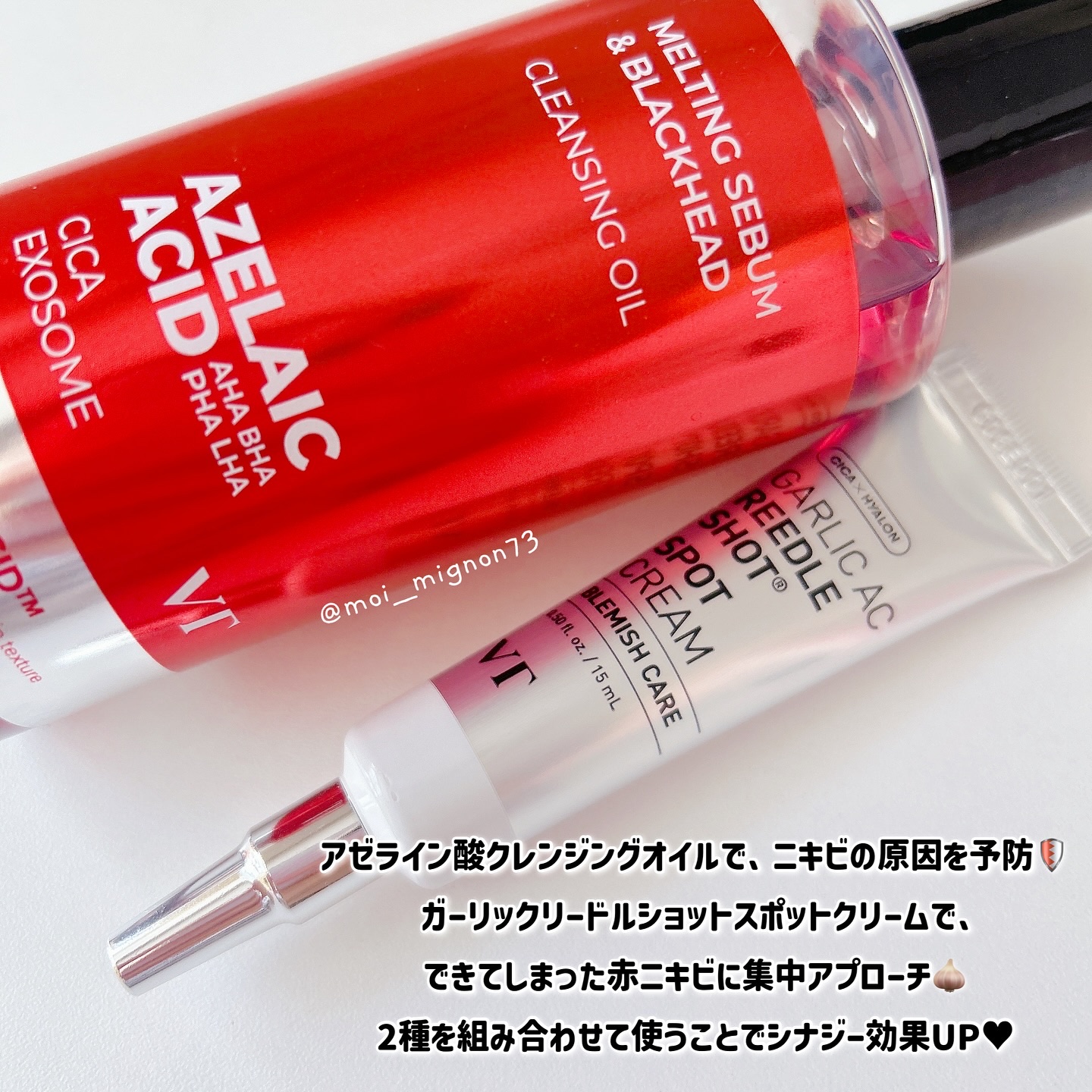 ニキビケアにはアゼライン酸✖️ニンニク!VTのニキビ撲滅セットをご紹介✨❤️アゼライン酸クレンジングオイルVTのアゼライン酸クレンジングオイルはニキビの原因となるメイクの洗い残し、皮脂、角質、毛穴詰まりをケアしてニキビ対策!さらっとしたウォー...