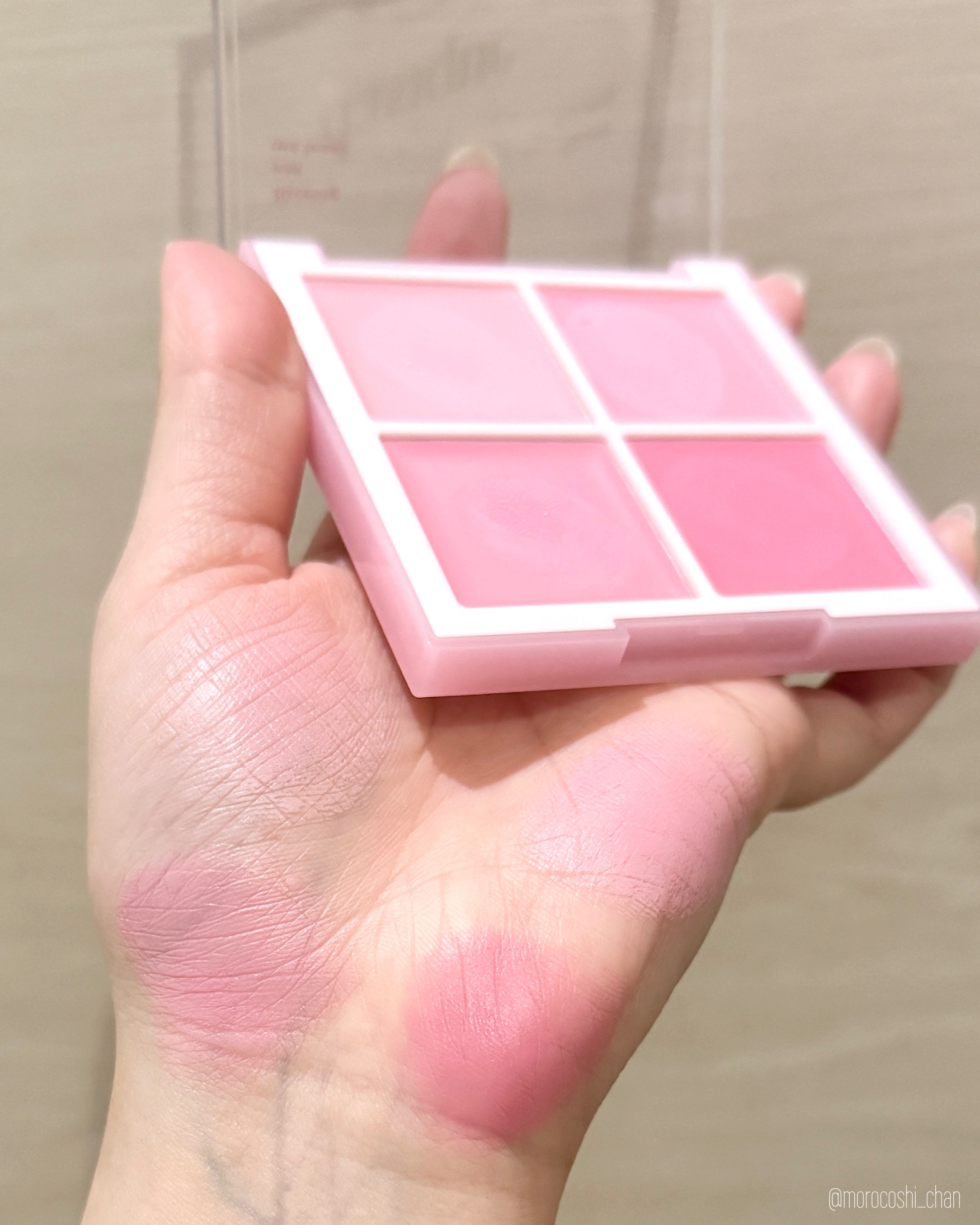 大人可愛いダスティピンク♡₊⁺ マットな質感なのに 透け感のあるシアーな仕上がり。 色と色の間に仕切りが無いから パレットの中で色を混ぜることも◎ ふんわり発色だから 他のアイシャドウとの相性も良いし 一つ持ってるととっても便利なパレット🥹🫶🤍