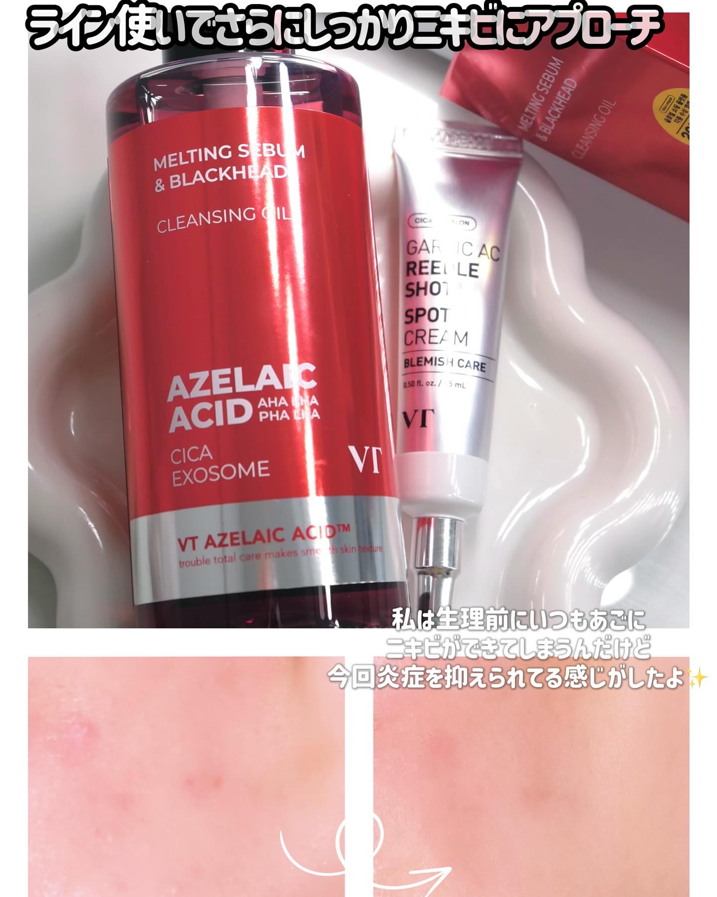 【ニキビケアにおすすめ🔍】VTのアイテムを2種類ご紹介します🫧✔︎アゼライン酸クレンジングオイル✔︎ガーリックスポットクリーム💡アゼライン酸クレンジングオイル洗浄力+毛穴ケア+ニキビ予防を同時に叶えたアイテム✨ニキビの原因となる毛穴の中の皮脂...