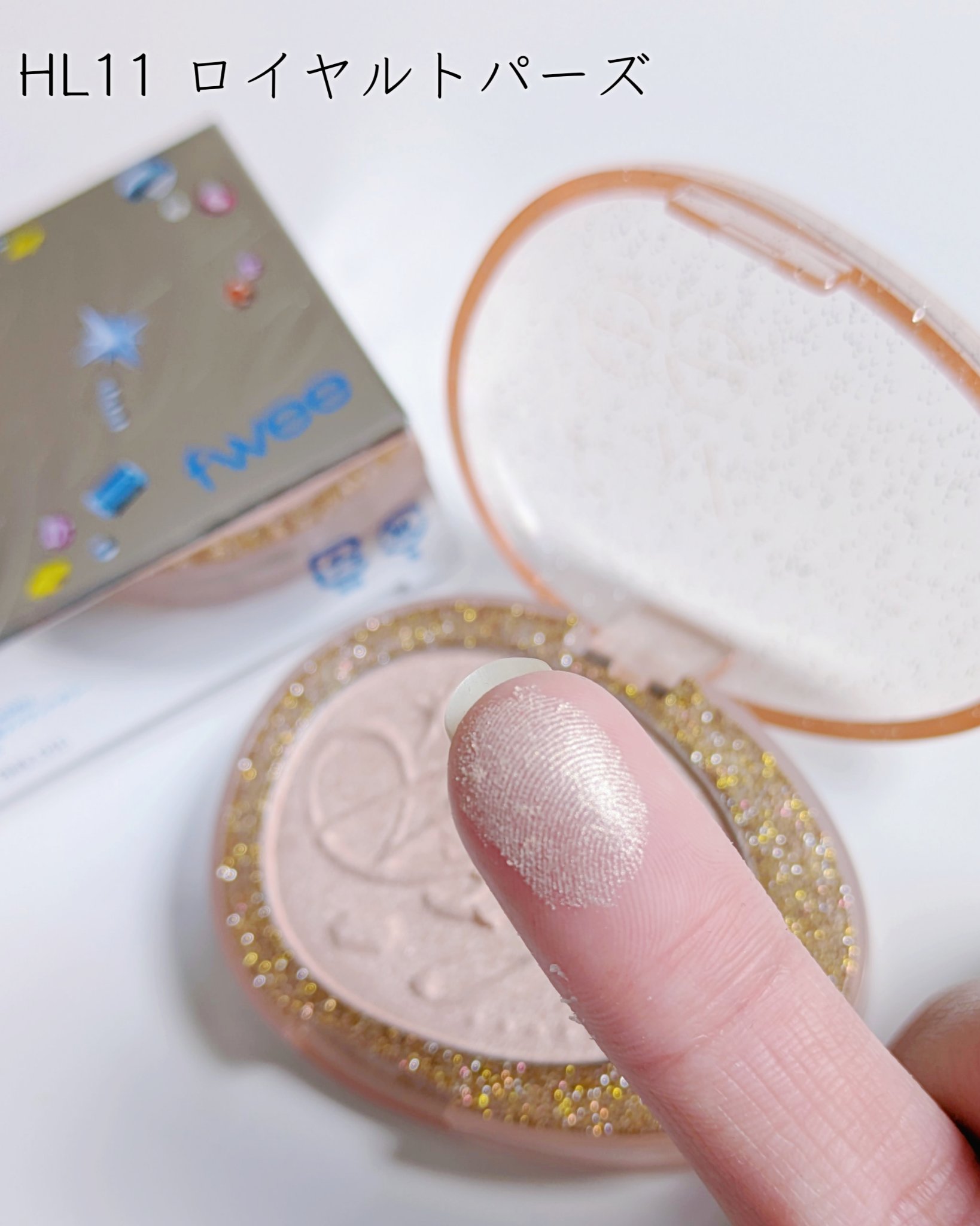 fweeから新しく誕生石をテーマにしたハイライトが新登場✴︎ パケから、外箱までキラキラの宝石みたいで可愛すぎる💎 全部で12色もの多彩なカラー展開で使い易いカラーから、珍しいグリーンやブルー、レッドなどのハイライトカラーもあるよ◎ HL08ウィッシュムーンは肌馴染みがいいオレンジハイライトながらほんのり青っぽく偏光するチークカラーとしておすすめ!