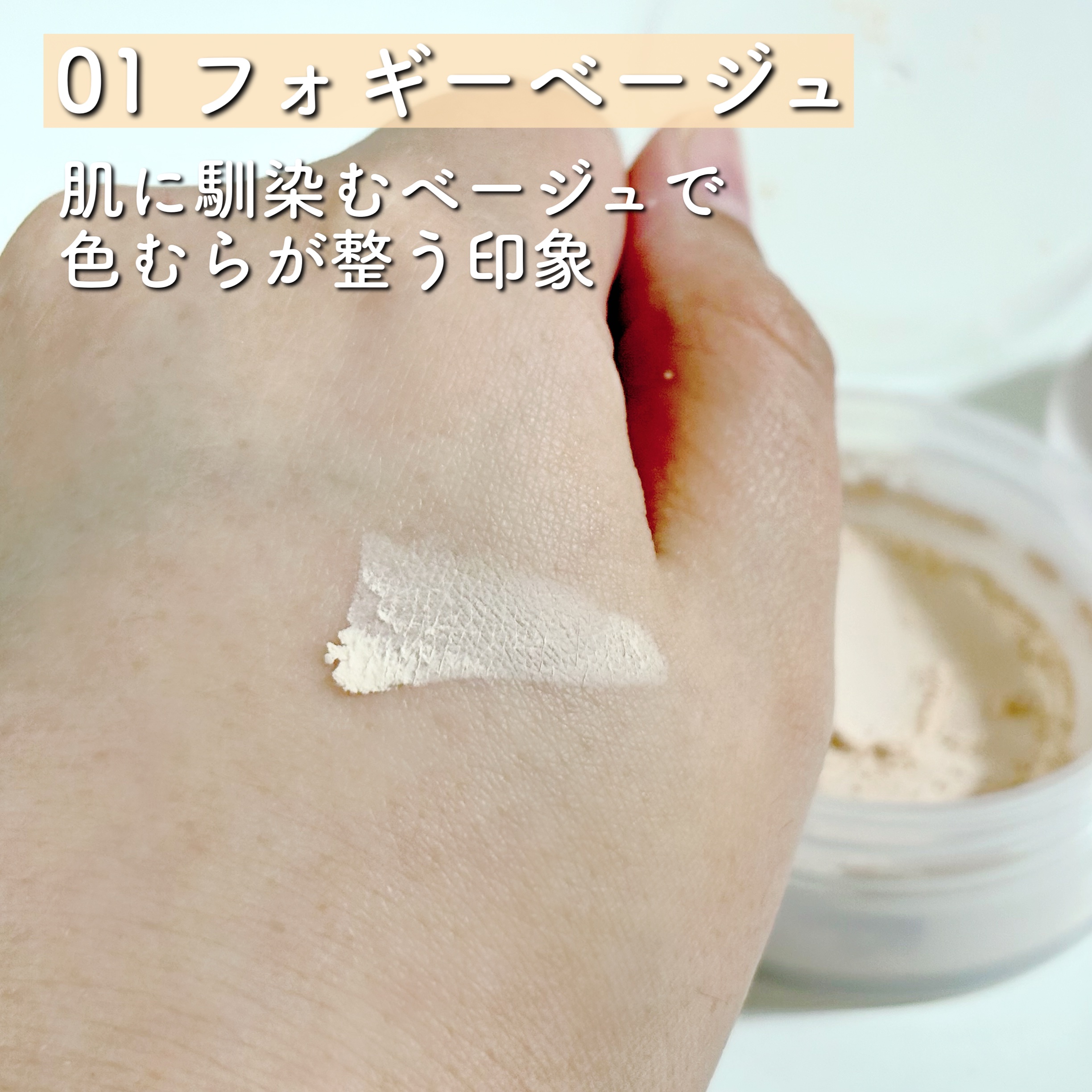 ふわっと軽く伸びの良い球状パウダーがすーっと溶け込むようにフィット。軽やかなつけ心地でふんわり桃肌仕上げ✨️ 均⼀できめ細やかなパウダーが出るメッシュネットを採用しているそう☺️! 01番の自然な肌感も好きなんだけど、02番の明るく透明感の出る仕上がりも最高でした🥺💕