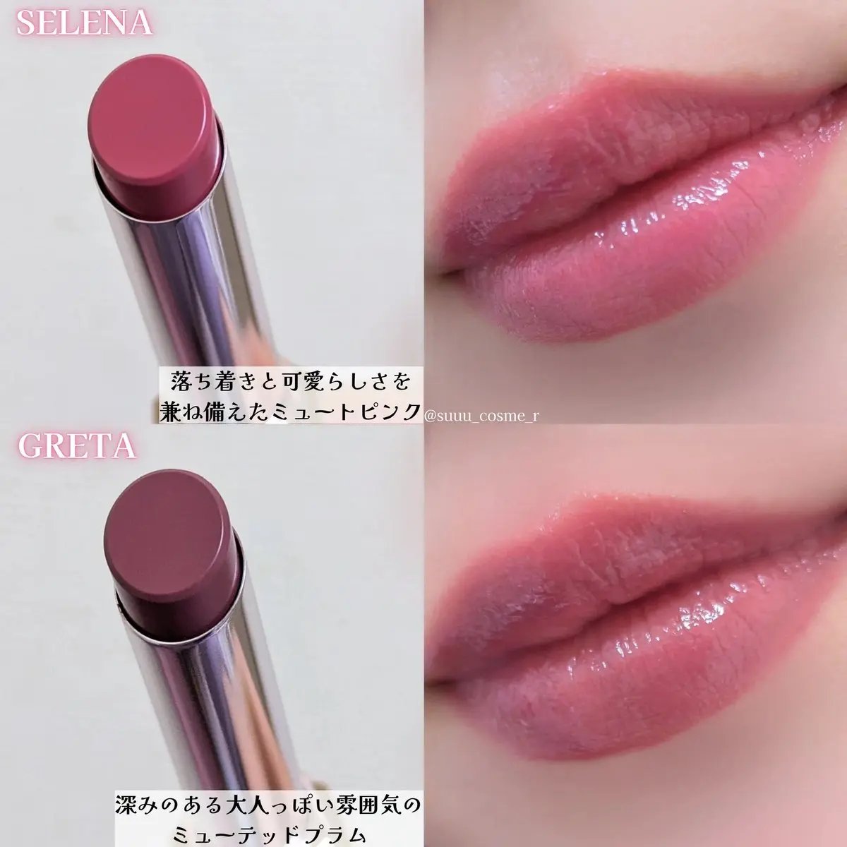 ほんまにほんまに可愛い💖 ピンク好きにはたまらん〜🩷🩷🩷 特に上の2色はラメのきらめきがやばい✨✨ 真ん中のラメは発色も良くて苺っぽいカラー🍓 自然なツヤが出て、ほんのりキラキラするのがほんとに可愛い!!ほんのりピンク味のあるベージュで誰でも使いやすい色味だと思いました✨✨
