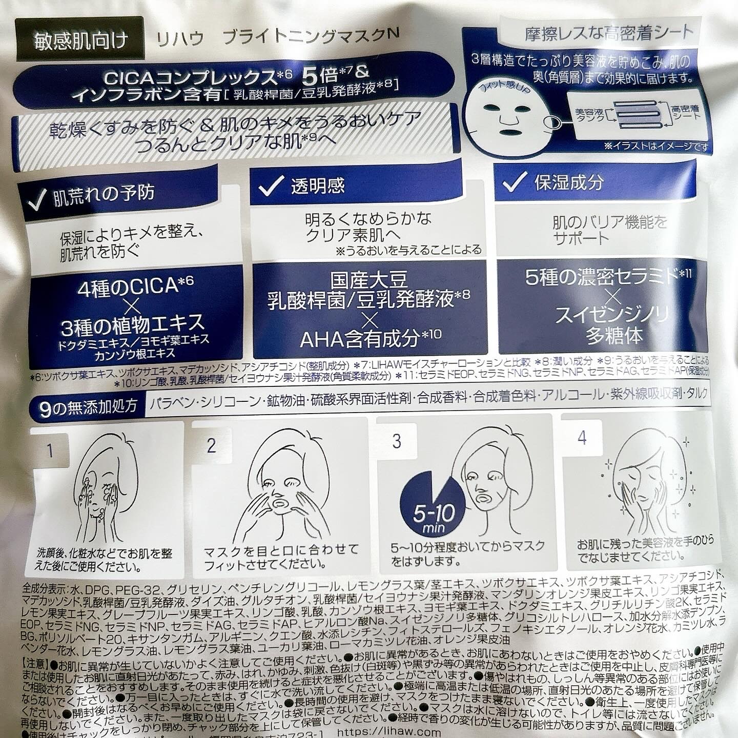 LIHAWブライトニングマスク『LIHAW』肌荒れ予防とうるおい透明肌へ導くシートマスクが進化!3⽉24⽇(⽉)よりパワーアップリニューアル発売!CICA&セラミド5倍イソフラボン含有乾燥くすみを防ぐ肌のキメをうるおいケア使ってみたらシートに...