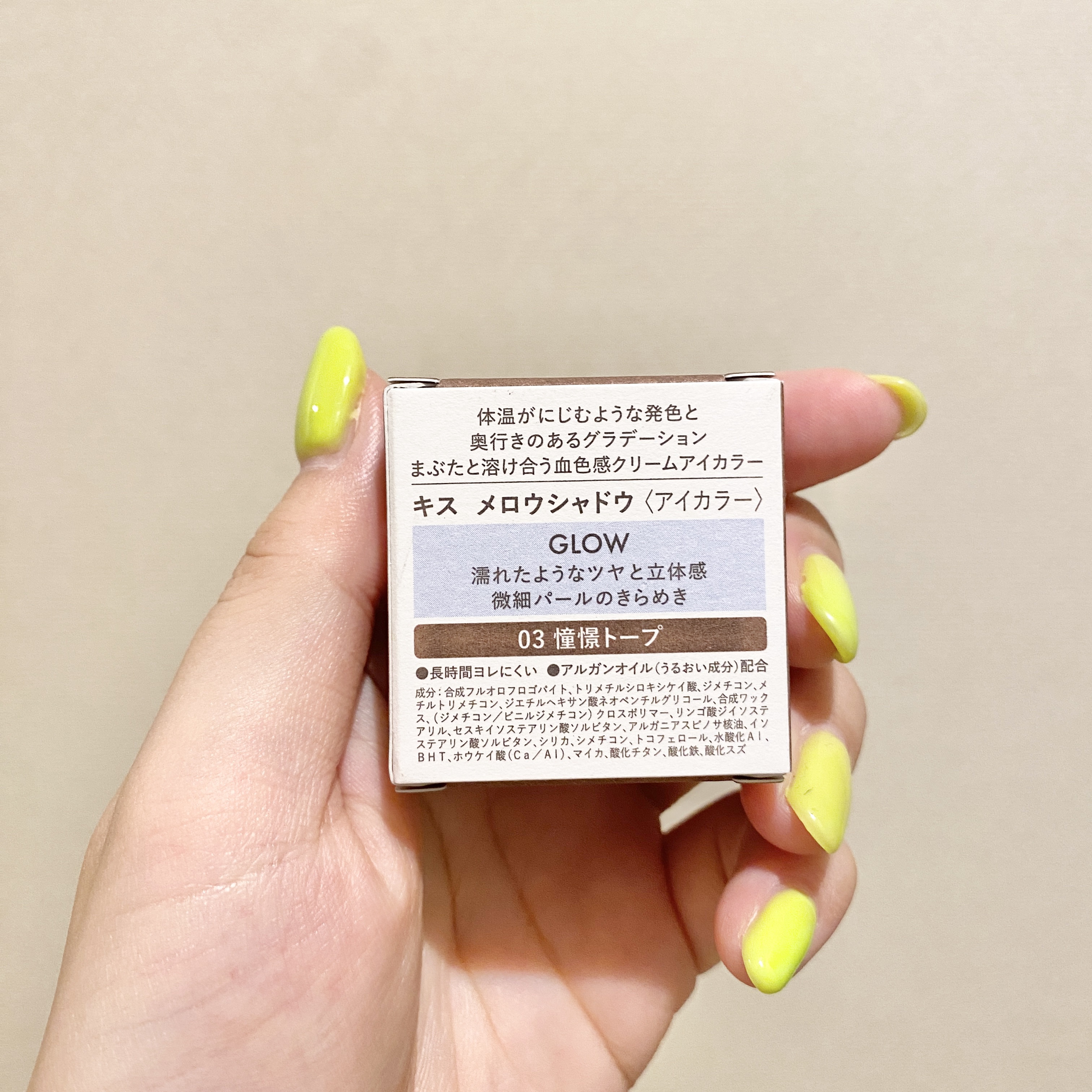 03憧憬トープは濡れたようなツヤと立体感微細パールのきらめくGLOWタイプ♡ この03憧憬トープめっっっちゃ可愛い! ブルベ必見な黄み控えめブラウン!! ジュワッとした血色感があってこれだけでも盛れる♡ ほんのり儚げな雰囲気のある仕上がりがたまりません!!