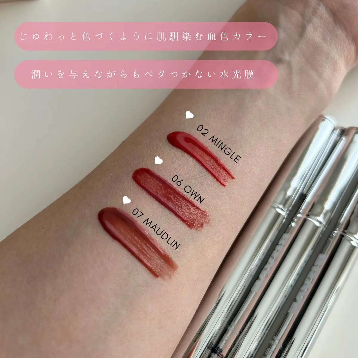 - みずみずしいウォーターテクスチャーのティント。万年筆をモチーフにした「ペン型ティント」でユニークなデザイン。 全10色展開。透明に発色するカラーとしっとりした水分膜が特徴。