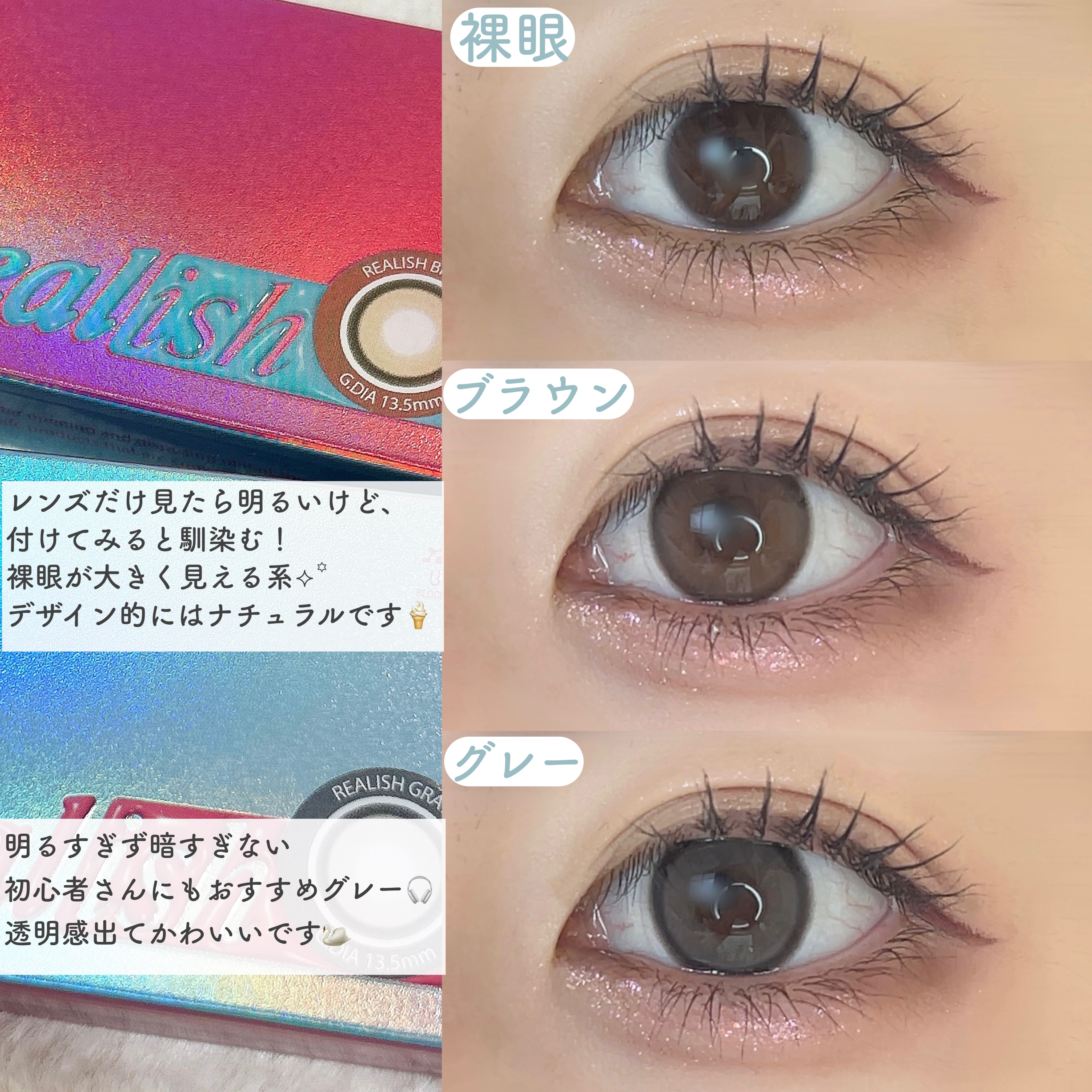 OLENS新作カラコン💓Realishが超可愛いっ!!ということで、デカ目カラコン比較👀新作のRealishは、着色直径13.5mmでOLENSにしたら少し大きめ。しっかりしたフチで瞳も強調できるし、色味もナチュラルで使いやすい👍🏻̖́-ナチ...