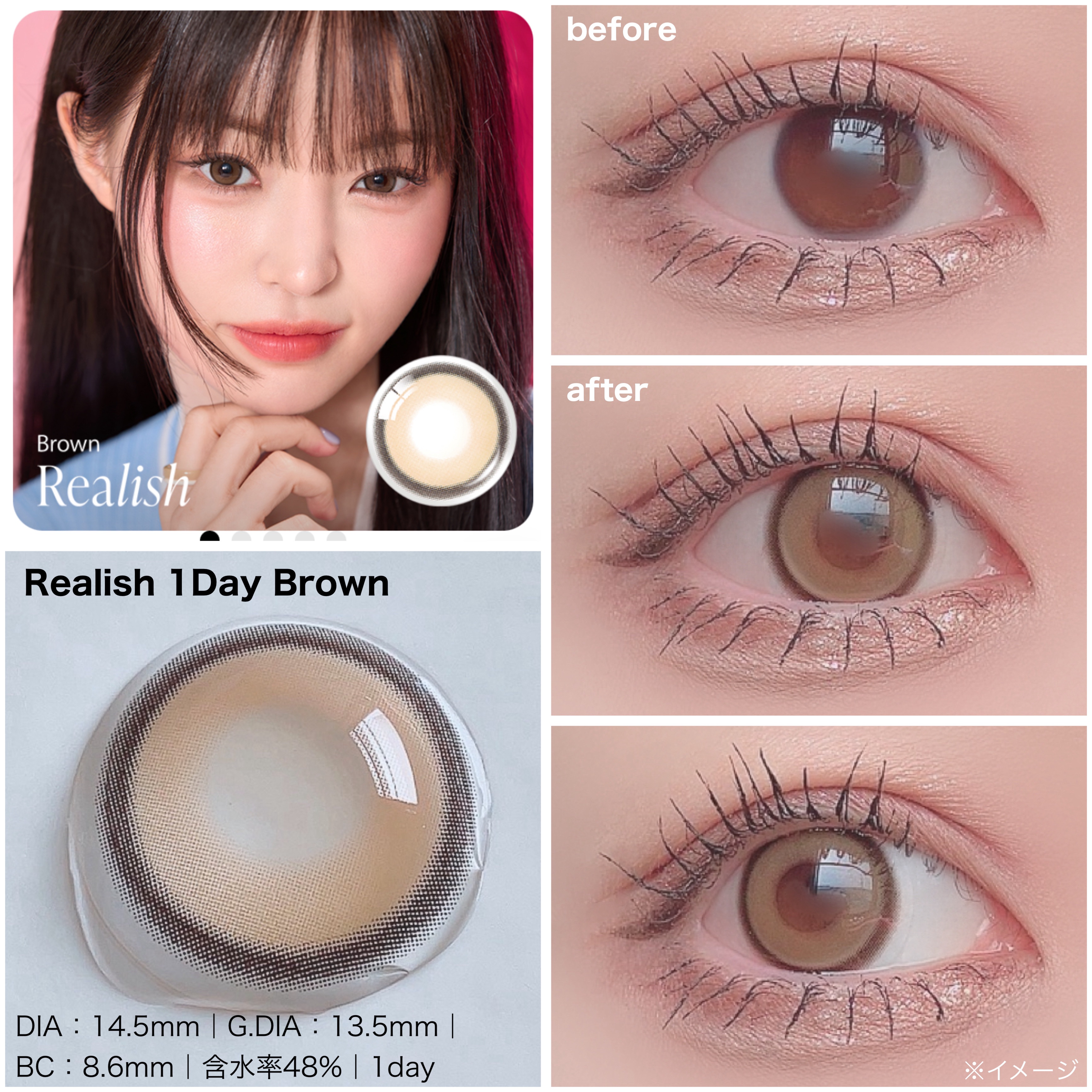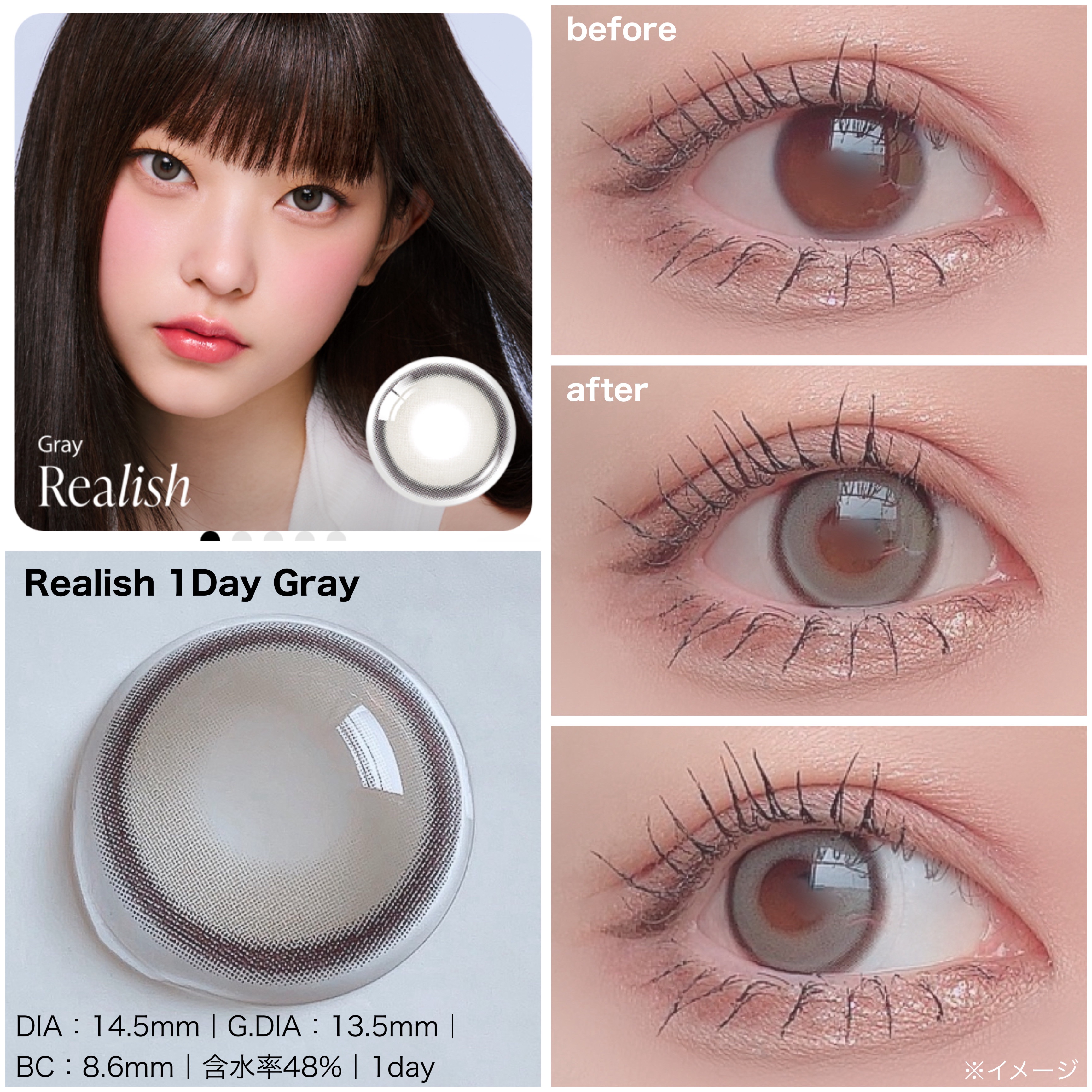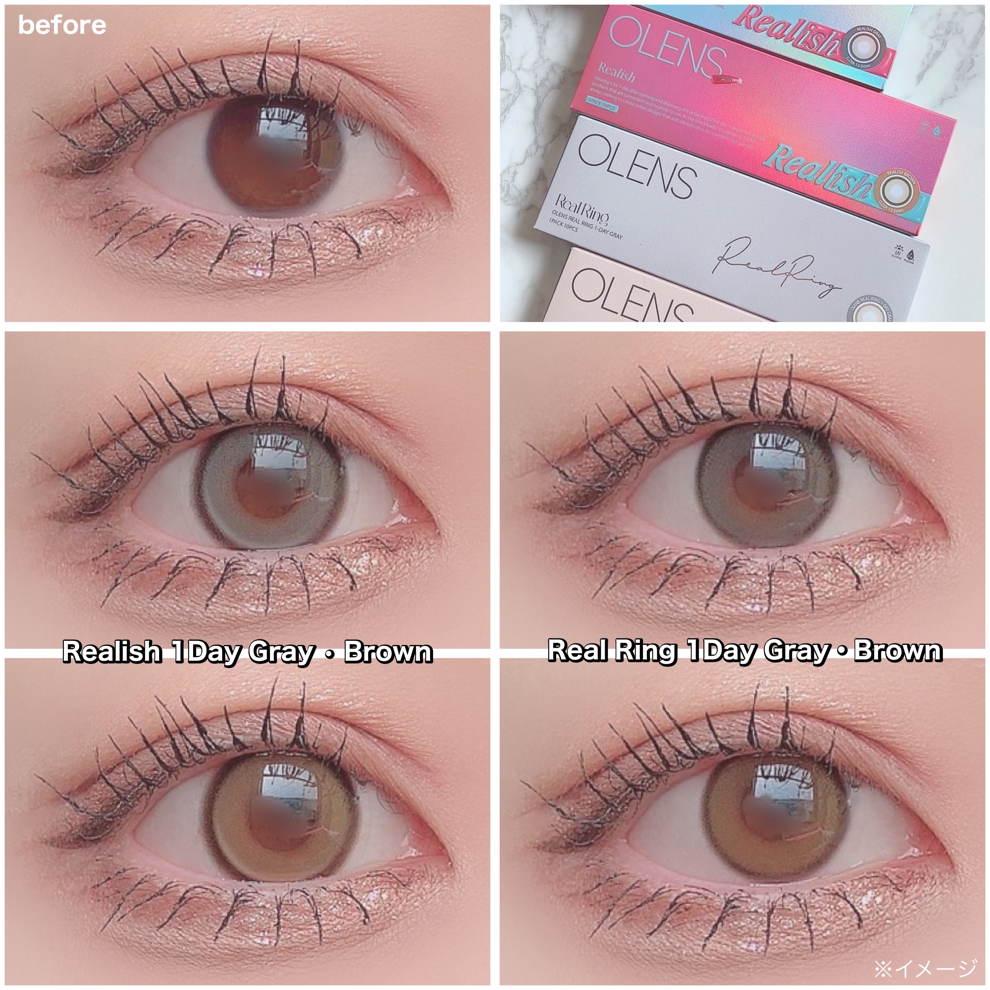 ♡新作のリアリッシュとリアルリングどっちが好き??🤍🤍OLENS🤍→RealishGray•Brown(リアリッシュグレー・ブラウン)1Day(1箱10枚入り)DIA14.5mm着色直径13.5mm含水率48%太めの黒縁でくっきりとした目元を...