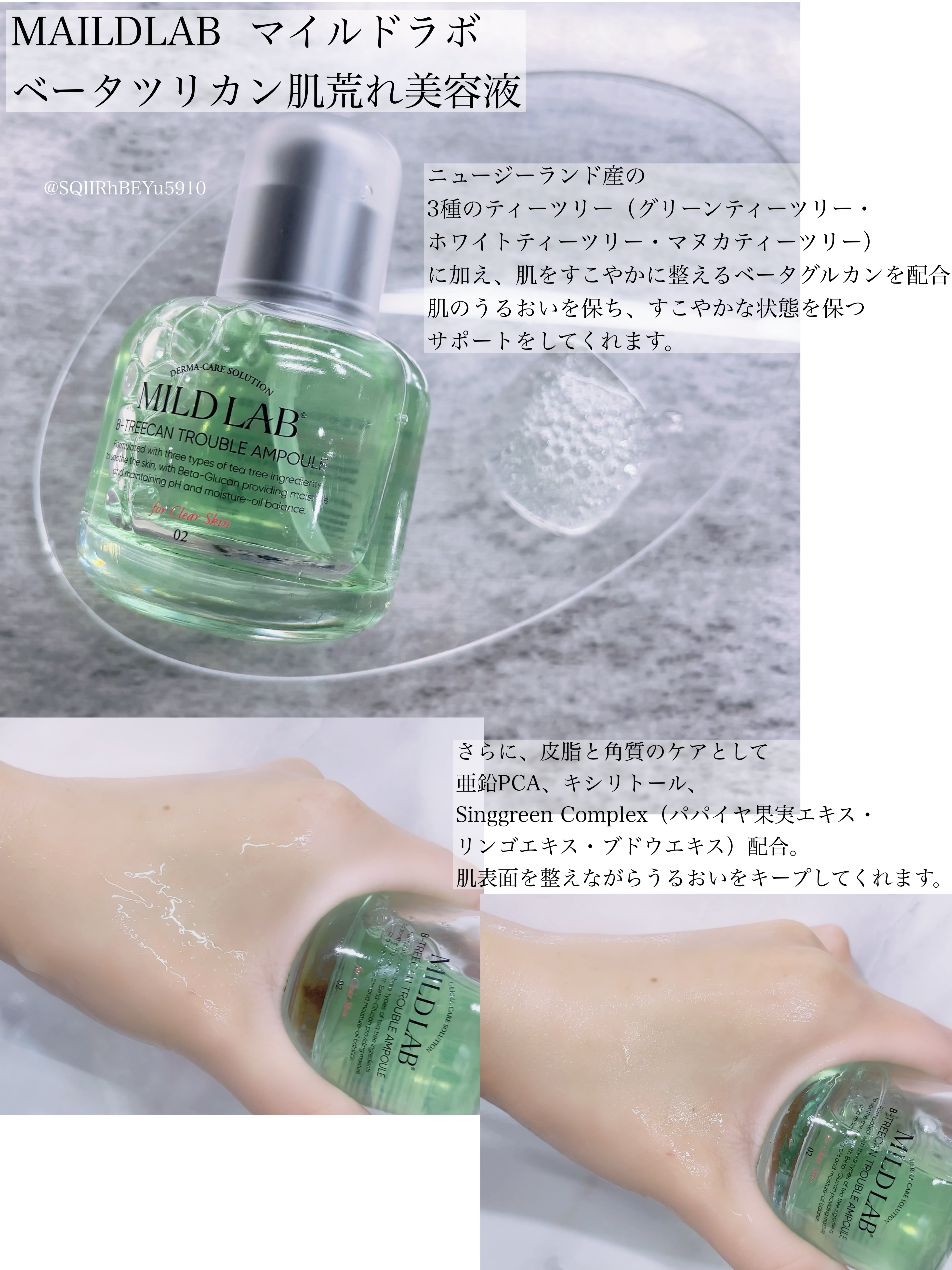 MILDLABさまから商品提供いただきました新作のベータツリカン肌荒れ美容液🌿あだ名はみど玉美容液だそうです!ベータツリカンニュージーランド原産の3種類のティーツリーと肌を健やかに整える「ベータグルカン」ニキビができにくい健康な肌環境をサポー...