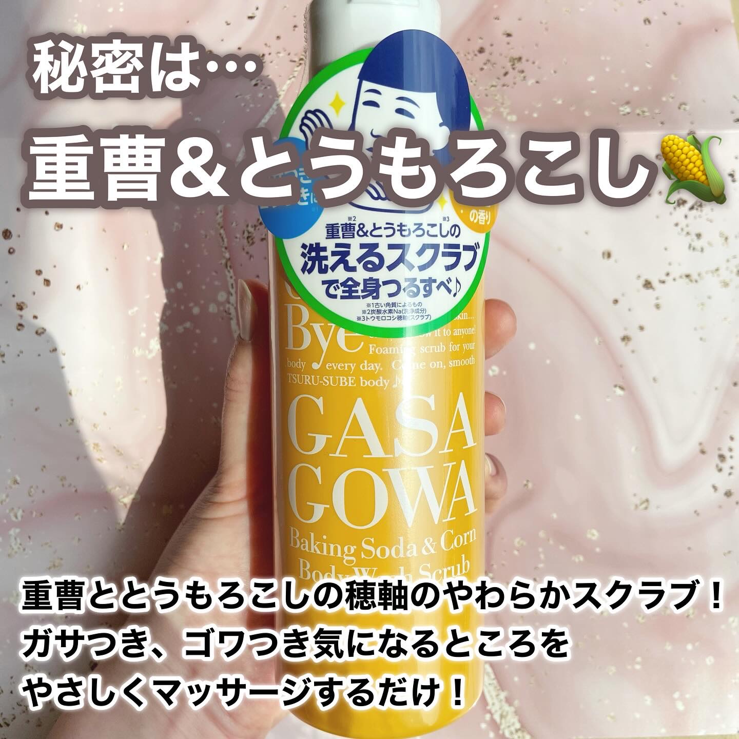 - ブツブツ二の腕にザラザラかかと・・・気になる全身のガサつき・ゴワつき*1は重曹*2&とうもろこし*3の洗えるスクラブで丸ごとつるんっ♪ 重曹が角質をゆるめ汚れを浮かせ、とうもろこしのやわらかスクラブでやさしい使い心地で磨きます。 思わず撫でたくなるようなつるすべボディに。 しっかり泡立てるとボディソープにもなる1本2役。毎日使えます。 かんきつ精油の香り。 *1 古い角質によるもの *2 炭酸水素Na(洗浄成分) *3 トウモロコシ穂軸