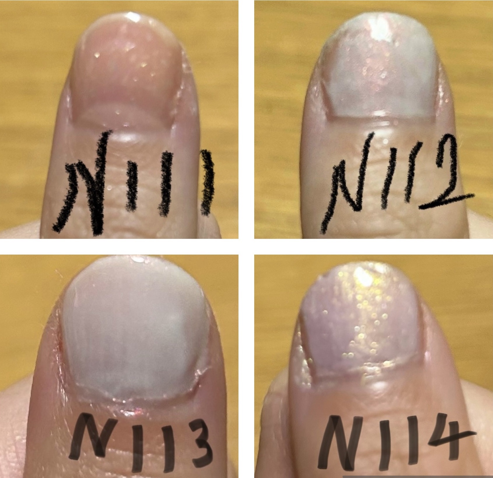 - <N02 シックボルドー> 酢酸ブチル、酢酸エチル、ニトロセルロース、(アジピン酸/ネオペンチルグリコール/無水トリメリト酸)コポリマー、クエン酸アセチルトリブチル、イソプロパノール、アクリレーツコポリマー、ステアラルコニウムベントナイト、酸化鉄、ブタノール、オキシベンゾン-1、シリカ、赤220、ジアセトンアルコール、酸化チタン、リン酸、カーボンブラック、ジ安息香酸トリメチルペンタンジイル、黄4、赤226 [旧]酢酸ブチル、酢酸エチル、ニトロセルロース、(アジピン酸/ネオペンチルグリコール/無水トリメリト酸)コポリマー、クエン酸アセチルトリブチル、イソプロパノール、アクリレーツコポリマー、ステアラルコニウムベントナイト、(スチレン/アクリレーツ)コポリマー、酸化鉄、ブタノール、シリカ、オキシベンゾン-1、赤220、ジアセトンアルコール、酸化チタン、ジ安息香酸トリメチルペンタンジイル、リン酸、カーボンブラック、黄4 <N08 ミスティモーヴ> 酢酸ブチル、酢酸エチル、ニトロセルロース、(アジピン酸/ネオペンチルグリコール/無水トリメリト酸)コポリマー、クエン酸アセチルトリブチル、イソプロパノール、アクリレーツコポリマー、ステアラルコニウムベントナイト、酸化チタン、ブタノール、シリカ、オキシベンゾン-1、マンガンバイオレット、ジアセトンアルコール、酸化鉄、赤226、リン酸、カオリン、ジ安息香酸トリメチルペンタンジイル、黄4 [旧] 酢酸ブチル、酢酸エチル、ニトロセルロース、(アジピン酸/ネオペンチルグリコール/無水トリメリト酸)コポリマー、クエン酸アセチルトリブチル、イソプロパノール、アクリレーツコポリマー、ステアラルコニウムベントナイト、(スチレン/アクリレーツ)コポリマー、酸化チタン、ブタノール、オキシベンゾン-1、シリカ、酸化鉄、ジアセトンアルコール、マンガンバイオレット、ジ安息香酸トリメチルペンタンジイル、リン酸、カーボンブラック、黄4 <N10 ペールラベンダー> 酢酸ブチル、酢酸エチル、ニトロセルロース、(アジピン酸/ネオペンチルグリコール/無水トリメリト酸)コポリマー、クエン酸アセチルトリブチル、イソプロパノール、アクリレーツコポリマー、ステアラルコニウムベントナイト、酸化チタン、ブタノール、酸化鉄、オキシベンゾン-1、シリカ、ジアセトンアルコール、マンガンバイオレット、リン酸、ジ安息香酸トリメチルペンタンジイル、黄4、赤226 [旧]酢酸ブチル、酢酸エチル、ニトロセルロース、(アジピン酸/ネオペンチルグリコール/無水トリメリト酸)コポリマー、クエン酸アセチルトリブチル、イソプロパノール、アクリレーツコポリマー、ステアラルコニウムベントナイト、酸化チタン、ブタノール、シリカ、オキシベンゾン-1、ジアセトンアルコール、酸化鉄、ジ安息香酸トリメチルペンタンジイル、マンガンバイオレット、リン酸、黄4 <N12 アーモンドグリーン> 酢酸ブチル、酢酸エチル、ニトロセルロース、(アジピン酸/ネオペンチルグリコール/無水トリメリト酸)コポリマー、クエン酸アセチルトリブチル、イソプロパノール、アクリレーツコポリマー、ステアラルコニウムベントナイト、(スチレン/アクリレーツ)コポリマー、酸化チタン、ブタノール、シリカ、オキシベンゾン-1、ジアセトンアルコール、ジ安息香酸トリメチルペンタンジイル、黄4、カーボンブラック、リン酸、コンジョウ <N16 ココア> 酢酸ブチル、酢酸エチル、ニトロセルロース、(アジピン酸/ネオペンチルグリコール/無水トリメリト酸)コポリマー、クエン酸アセチルトリブチル、イソプロパノール、酸化チタン、アクリレーツコポリマー、ステアラルコニウムベントナイト、酸化鉄、ブタノール、シリカ、オキシベンゾン-1、ジアセトンアルコール、黄4、リン酸、ジ安息香酸トリメチルペンタンジイル、カーボンブラック、赤226 [旧]酢酸ブチル、酢酸エチル、ニトロセルロース、(アジピン酸/ネオペンチルグリコール/無水トリメリト酸)コポリマー、クエン酸アセチルトリブチル、イソプロパノール、酸化チタン、アクリレーツコポリマー、ステアラルコニウムベントナイト、ブタノール、酸化鉄、シリカ、オキシベンゾン-1、ジアセトンアルコール、ジ安息香酸トリメチルペンタンジイル、黄4、リン酸、カーボンブラック <N17 クリームチャイ> 酢酸ブチル、酢酸エチル、ニトロセルロース、(アジピン酸/ネオペンチルグリコール/無水トリメリト酸)コポリマー、クエン酸アセチルトリブチル、イソプロパノール、アクリレーツコポリマー、ステアラルコニウムベントナイト、(スチレン/アクリレーツ)コポリマー、酸化チタン、ブタノール、シリカ、オキシベンゾン-1、ジアセトンアルコール、ジ安息香酸トリメチルペンタンジイル、酸化鉄、リン酸、黄4、カーボンブラック <N19 スウィートコーラル> 酢酸ブチル、酢酸エチル、ニトロセルロース、(アジピン酸/ネオペンチルグリコール/無水トリメリト酸)コポリマー、クエン酸アセチ