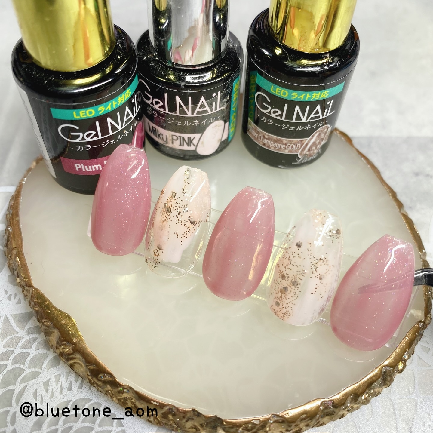ラメがしっかりしてるし クリアカラーが入ってるから オーロラパウダー無しでも 充分キラキラしました! 反射強めのフィルムなので 実物はもっと うるうるとキラキラが強いです! ビー玉みたい🥺 ネイルシール長持ちさせたいけど ちょっと飽きてきたな〜って時とかに 全然違った印象になるのでオススメです! Seriaのベースジェル 本当にうるうるネイルしやすいので オススメしたい🙆♀️