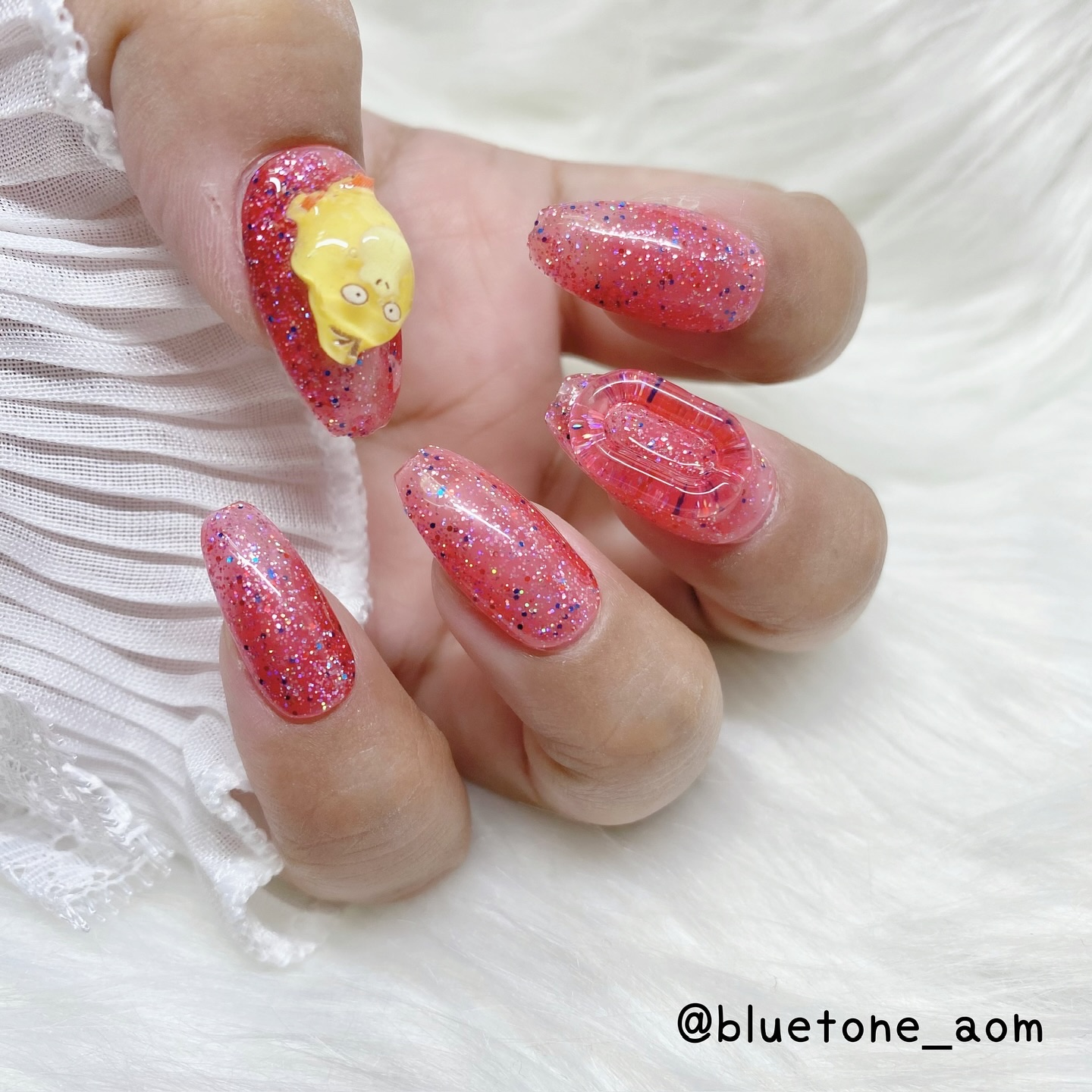 ラメがしっかりしてるし クリアカラーが入ってるから オーロラパウダー無しでも 充分キラキラしました! 反射強めのフィルムなので 実物はもっと うるうるとキラキラが強いです! ビー玉みたい🥺 ネイルシール長持ちさせたいけど ちょっと飽きてきたな〜って時とかに 全然違った印象になるのでオススメです! Seriaのベースジェル 本当にうるうるネイルしやすいので オススメしたい🙆♀️