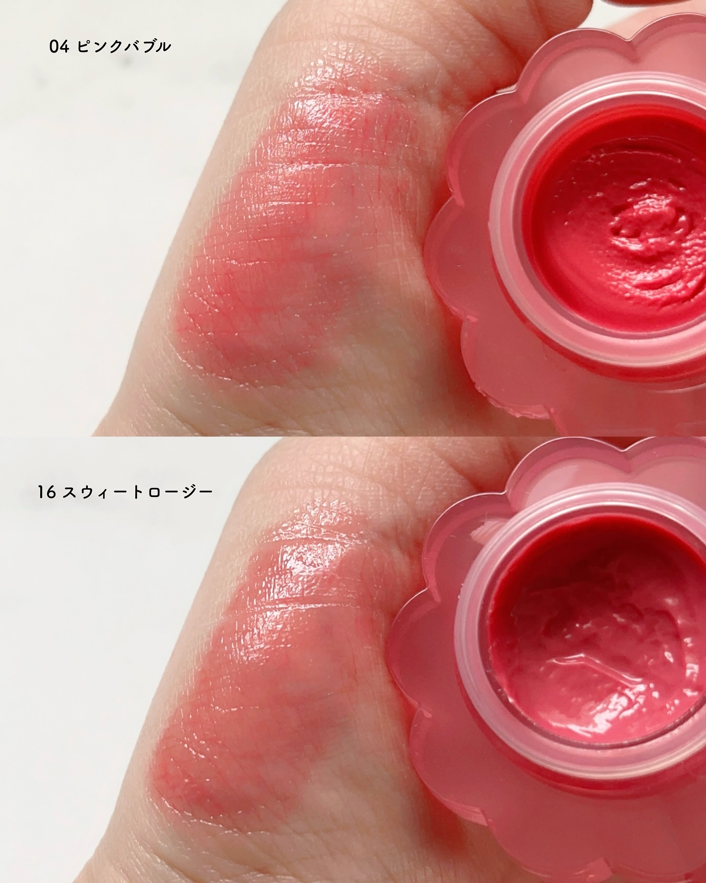 - <01 パパイヤクリーム> 水、ヘキサ(ヒドロキシステアリン酸/ステアリン酸/ロジン酸)ジペンタエリスリチル、トリエチルヘキサノイン、BG、グリセリン、オクチルドデカノール、ポリソルベート60、プロパンジオール、(PEG-240/デシルテトラデセス-20/HDI)コポリマー、1,2-ヘキサンジオール、セテアレス-20、フェノキシエタノール、エチルセルロース、カプリル酸グリセリル、(アクリル酸ヒドロキシエチル/アクリロイルジメチルタウリンNa)コポリマー、トリイソステアリン酸ポリグリセリル-2、リンゴ酸ジイソステアリル、酸化チタン、スクワラン、(アクリレーツ/アクリル酸アルキル(C10-30))クロスポリマー、トロメタミン、香料、エチルヘキシルグリセリン、黄4、赤104(1)、黄5、赤227、エチレンジアミンジコハク酸3Na、イソステアリン酸ソルビタン、ジイソステアリン酸ポリグリセリル-2、リナロール、ラウリン酸K、トコフェロール、青1 <02 ピーチドロップ> 水、ヘキサ(ヒドロキシステアリン酸/ステアリン酸/ロジン酸)ジペンタエリスリチル、トリエチルヘキサノイン、BG、グリセリン、オクチルドデカノール、ポリソルベート60、プロパンジオール、(PEG-240/デシルテトラデセス-20/HDI)コポリマー、1,2-ヘキサンジオール、セテアレス-20、フェノキシエタノール、リンゴ酸ジイソステアリル、酸化チタン、エチルセルロース、カプリル酸グリセリル、(アクリル酸ヒドロキシエチル/アクリロイルジメチルタウリンNa)コポリマー、トリイソステアリン酸ポリグリセリル-2、スクワラン、(アクリレーツ/アクリル酸アルキル(C10-30))クロスポリマー、トロメタミン、香料、エチルヘキシルグリセリン、黄5、赤104(1)、赤227、黄4、エチレンジアミンジコハク酸3Na、イソステアリン酸ソルビタン、ジイソステアリン酸ポリグリセリル-2、青1、リナロール、ラウリン酸K、トコフェロール <03 ハニーマンゴ> 水、ヘキサ(ヒドロキシステアリン酸/ステアリン酸/ロジン酸)ジペンタエリスリチル、トリエチルヘキサノイン、BG、グリセリン、オクチドデカノール、ポリソルベート60、プロパンジオール、(PEG-240/デシルテトラデセス-20/HDI)コポリマー、1,2-ヘキサンジオール、セテアレス-20、フェノキシエタノール、エチルセルロース、リンゴ酸ジイソステアリル、カプリル酸グリセリル、酸化チタン、(アクリル酸ヒドロキシエチル/アクリロイルジメチルタウリンNa)コポリマー、トリイソステアリン酸ポリグリセリル-2、スクワラン、(アクリレーツ/アクリル酸アルキル(C10-30))クロスポリマー、トロメタミン、香料、エチルヘキシルグリセリン、赤104(1)、黄5、赤227、黄4、エチレンジアミンジコハク酸3Na、イソステアリン酸ソルビタン、ジイソステアリン酸ポリグリセリル-2、リナロール、ラウリン酸K、トコフェロール、青1 <04 ピンクバブル> 水、ヘキサ(ヒドロキシステアリン酸/ステアリン酸/ロジン酸)ジペンタエリスリチル、トリエチルヘキサノイン、BG、グリセリン、オクチドデカノール、ポリソルベート60、プロパンジオール、(PEG-240/デシルテトラデセス-20/HDI)コポリマー、1,2-ヘキサンジオール、セテアレス-20、フェノキシエタノール、エチルセルロース、カプリル酸グリセリル、トリイソステアリン酸ポリグリセリル-2、(アクリル酸ヒドロキシエチル/アクリロイルジメチルタウリンNa)コポリマー、スクワラン、(アクリレーツ/アクリル酸アルキル(C10-30))クロスポリマー、リンゴ酸ジイソステアリル、酸化チタン、トロメタミン、香料、エチルヘキシルグリセリン、赤104(1)、酸化鉄、赤227、エチレンジアミンジコハク酸3Na、ジイソステアリン酸ポリグリセリル-2、黄4、イソステアリン酸ソルビタン、黄5、リナロール、ラウリン酸K、トコフェロール <05 アップルゼリー> 水、ヘキサ(ヒドロキシステアリン酸/ステアリン酸/ロジン酸)ジペンタエリスリチル、トリエチルヘキサノイン、BG、グリセリン、オクチドデカノール、ポリソルベート60、プロパンジオール、(PEG-240/デシルテトラデセス-20/HDI)コポリマー、1,2-ヘキサンジオール、セテアレス-20、フェノキシエタノール、トリイソステアリン酸ポリグリセリル-2、エチルセルロース、カプリル酸グリセリル、(アクリル酸ヒドロキシエチル/アクリロイルジメチルタウリンNa)コポリマー、スクワラン、(アクリレーツ/アクリル酸アルキル(C10-30))クロスポリマー、トロメタミン、香料、リンゴ酸ジイソステアリル、酸化チタン、エチルヘキシルグリセリン、赤227、黄5、赤104(1)、黄4、エチレンジアミンジコハク酸3Na、ジイソステアリン酸ポリグリセリル-2、イソステアリン酸ソルビタン、リナロール、ラウリン酸K、トコフェロール、青1 <06 クアバキャンディ> 水、ヘキサ(ヒドロキシステアリン酸/ステアリン酸/ロジン酸)ジペンタエリスリチル、トリエチルヘキサノイン、BG、グリセリン、オクチドデカノール、ポリソルベート60、プロパンジオール、(PEG-240/デシルテトラデセス-20/HDI)コポリマー、1,2-ヘキサンジオール、セテアレス-20、フェノ
