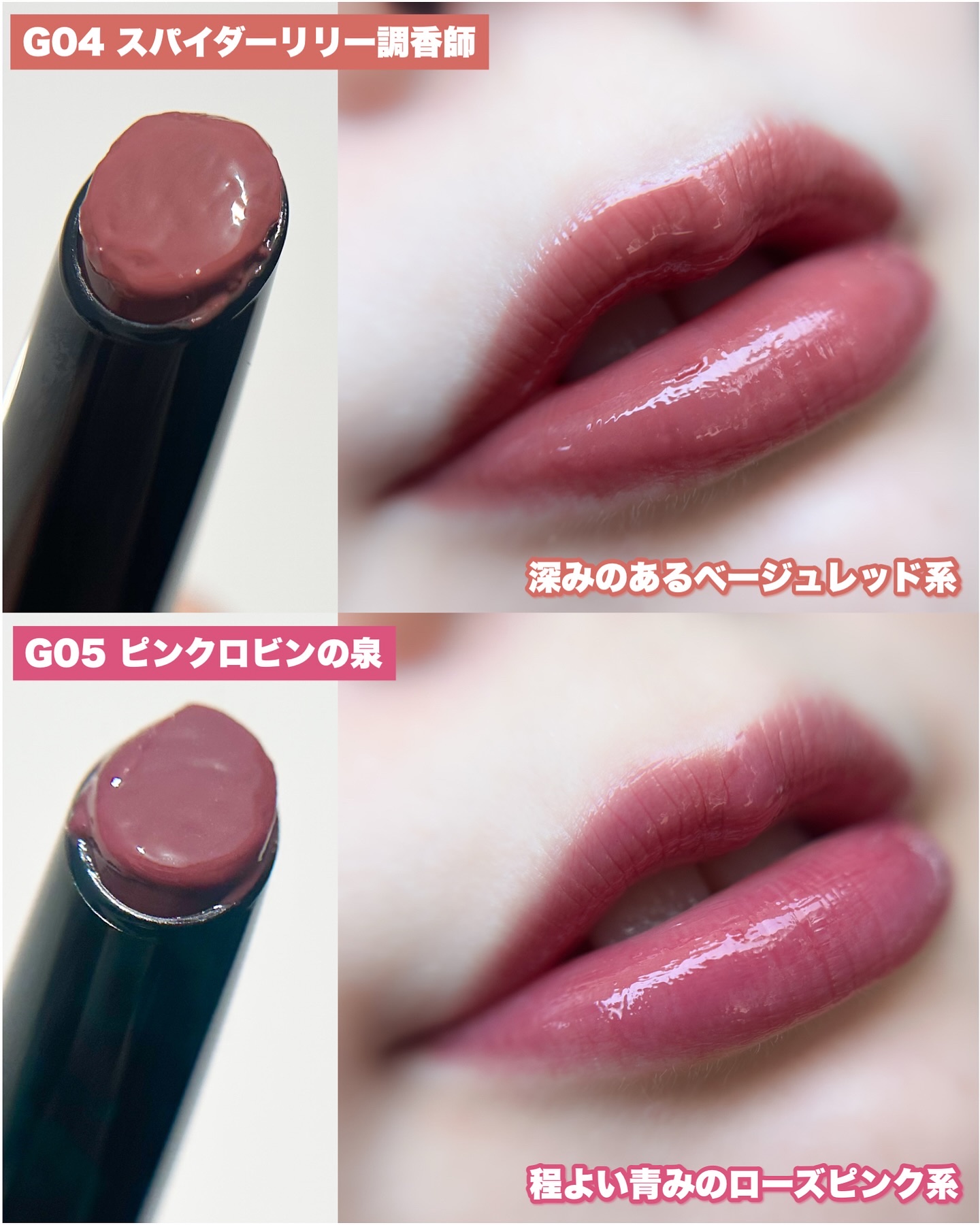 リップモンスターの良さはそのままでツヤツヤ感たっぷりになった「リップモンスターツヤバース」早くも新色が登場するよ🎉!新色は2色。・G04 スパイダーリリー調香師 ベージュレッド系。 意外と誰でも馴染みの良さそうなカラーなので ブルベの私でも使...