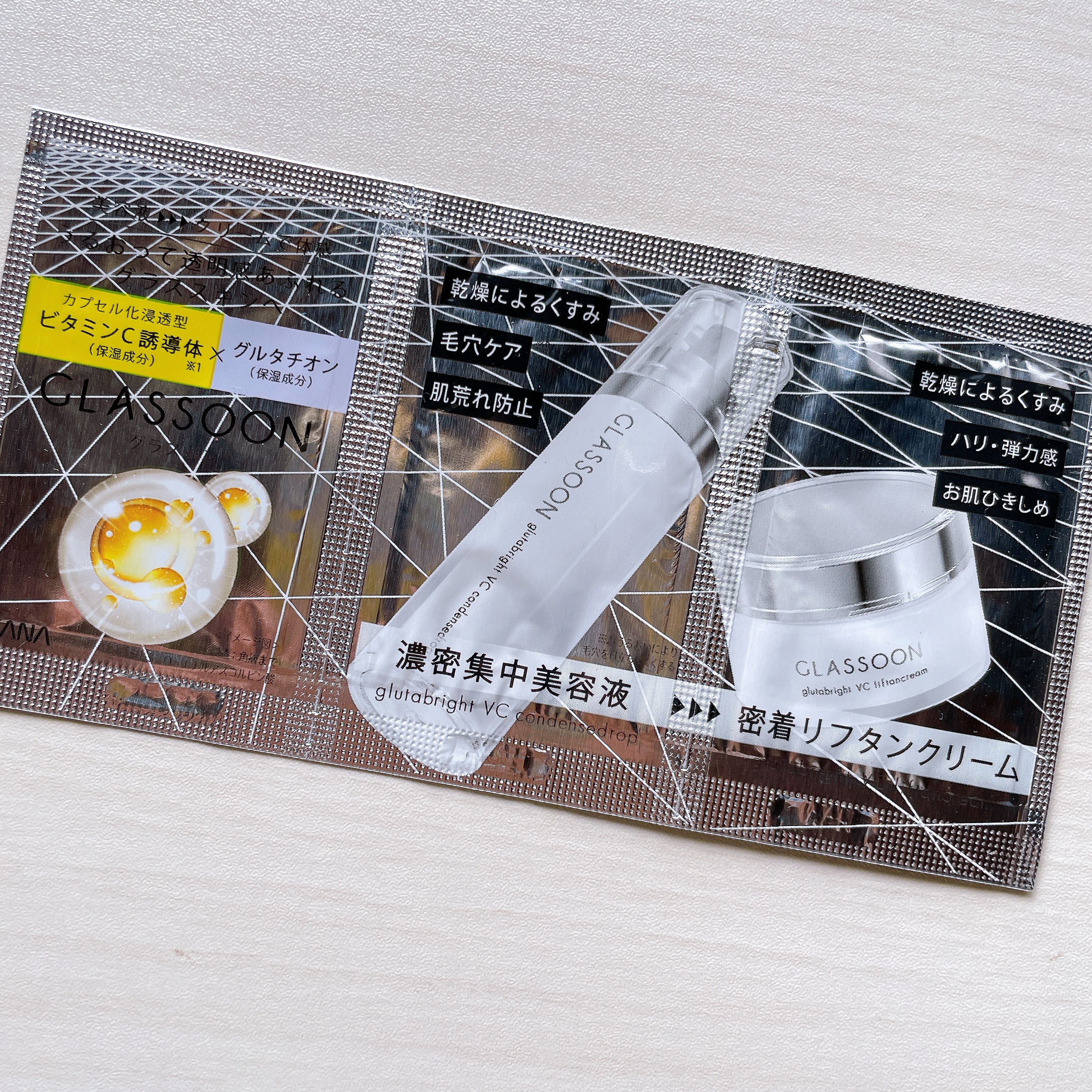 GLASSOON グルタブライト VC コンデンスドロップグラスーン グルタブライト VC リフタンクリームサンプルをいただきました✨グラスーン グルタブライト VC コンデンスドロップ化粧水後に使うタイプの美容液でテクスチャーはほんのりとろ...