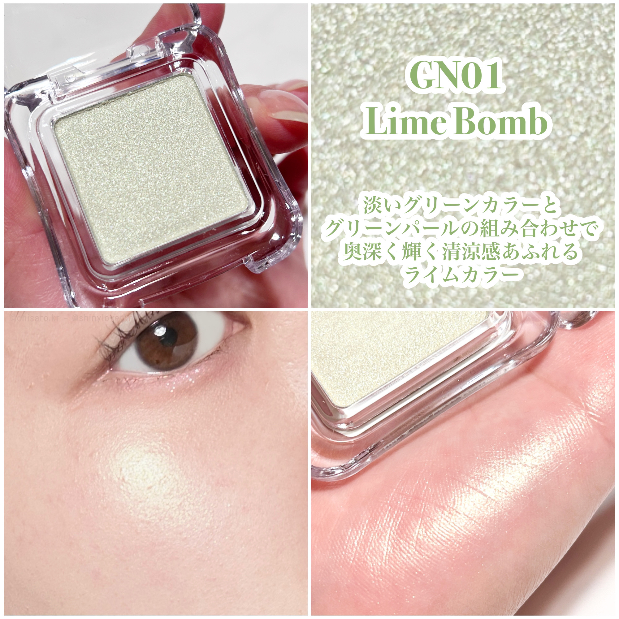 - ※2025年2月15日〜商品パッケージ・仕様をリニューアル。 多彩なカラーリングがあり、繊細なパールで自然な光沢感を演出してくれて、粉質はしっとり高発色! しっかりとお肌に密着するのでラメ飛びしにくく使いやすい色合い。