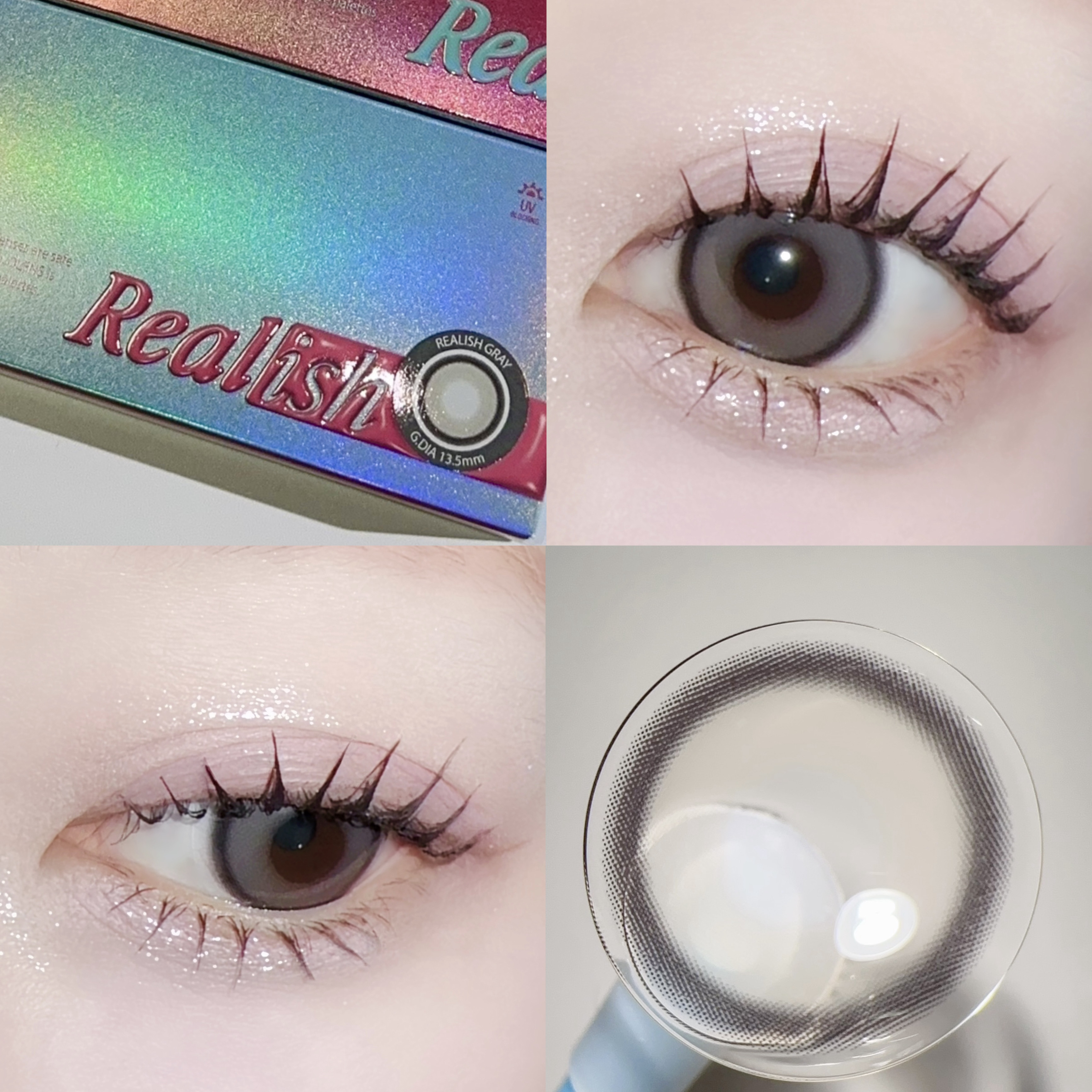 \OLENS新作デカ目カラコン比較🫶🏼🖤/▷OLENS■RealishGray、Brown🆕1Day(1箱10枚入り)DIA14.5mmGDIA13.5mmWATER48%透明感のあるトーンアップカラーと太フチでラブリーな目元を演出する#デカ...