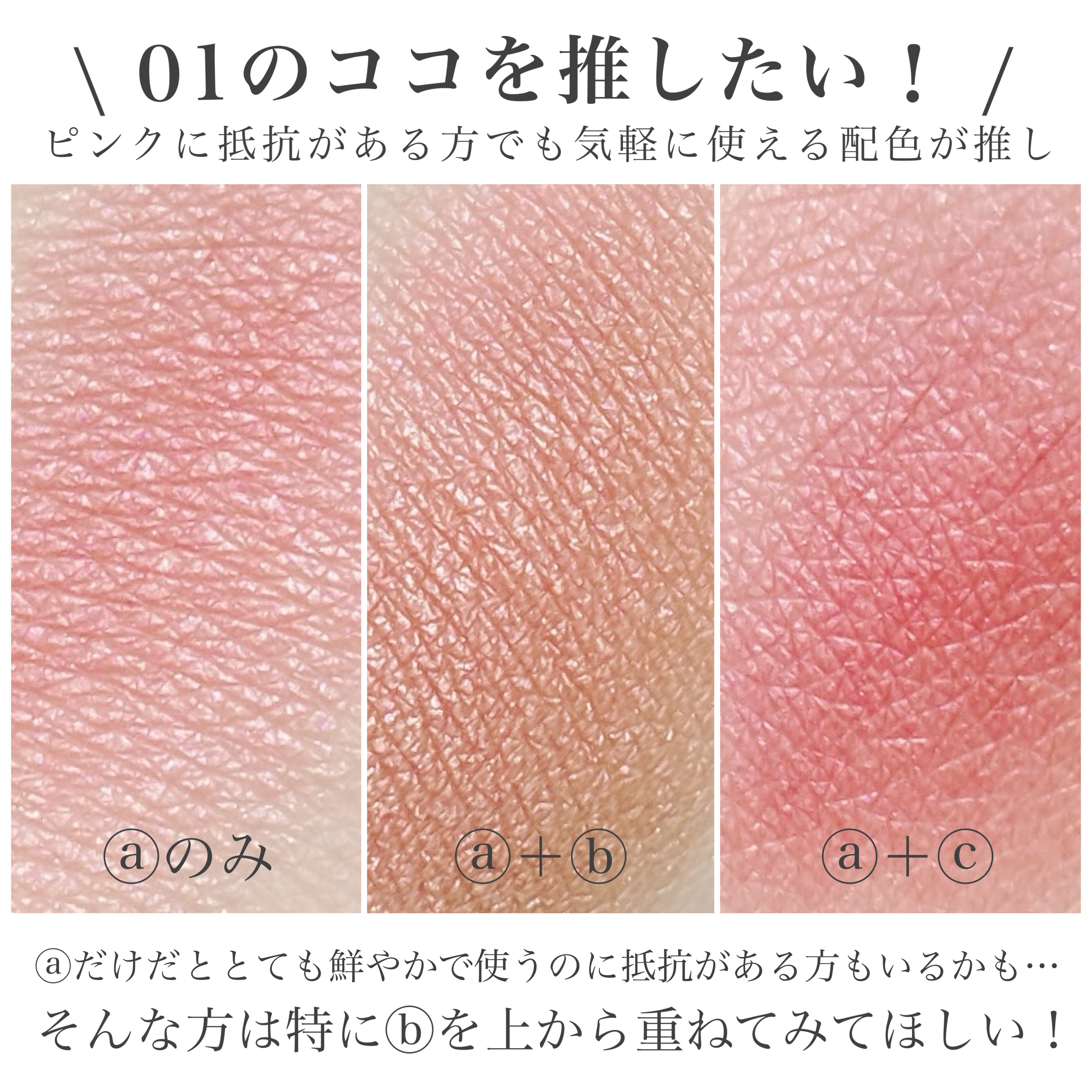 .追いました❤️❤️赤が主役のパレットだけど、ブラウンは多色ラメで華やか!ピンクは肌馴染みが良くてパッと明るくなる!白み系じゃない明るさが超絶使いやすい。そしてそしてラメはかなりしっとりとした粉質で、パッと見普通のラメに見えるけどベースカラー...