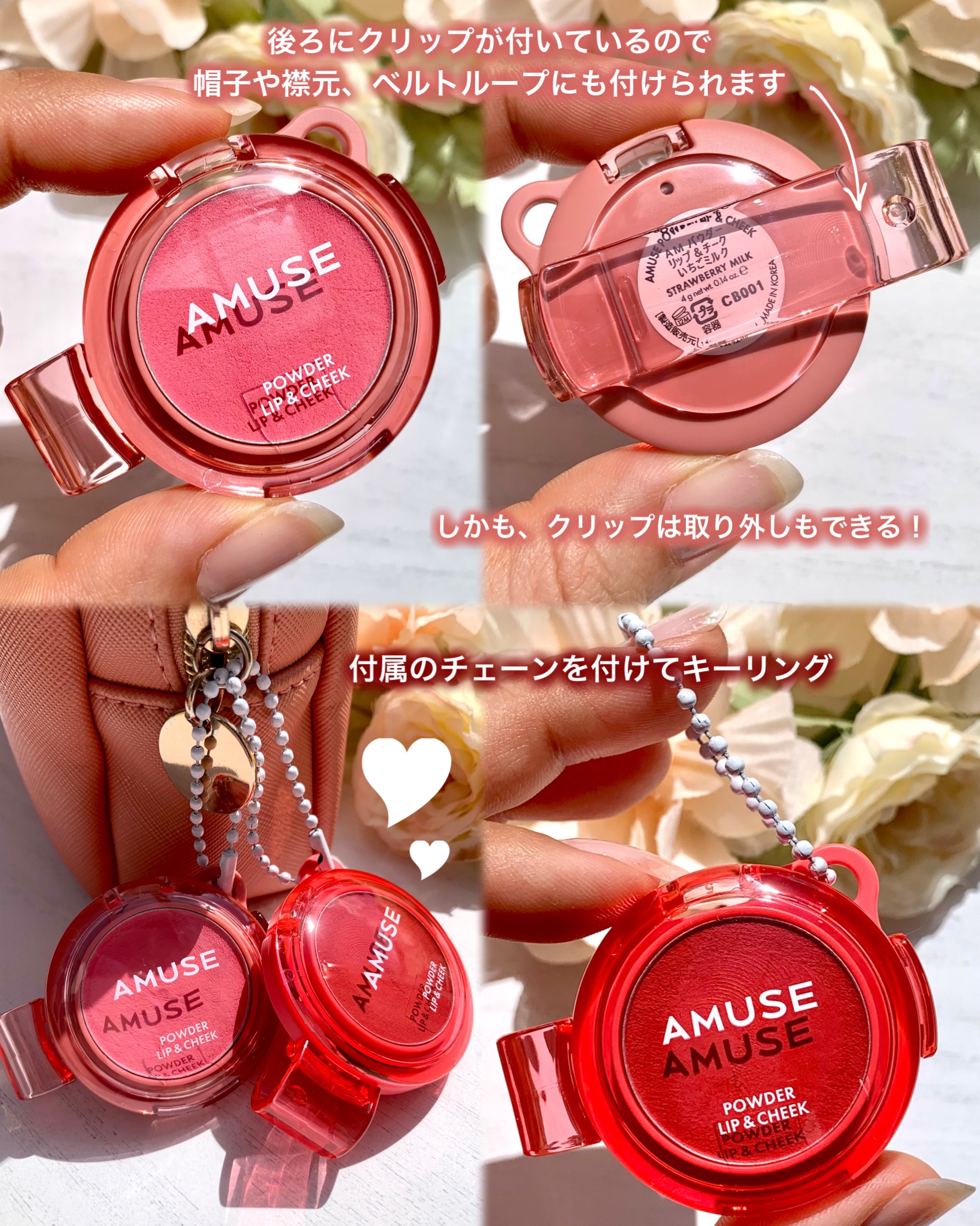 毎日持ち歩きたい!新感覚ビューティーアクセサリー💎︎✿••••✿AMUSEから、高画素発色の「パウダーリップ&チーク」が新登場✨4/19〜全国のバラエティーショップで発売開始!✔︎ダマにならず、さらさらな仕上がり!✔︎リップ・チーク・...